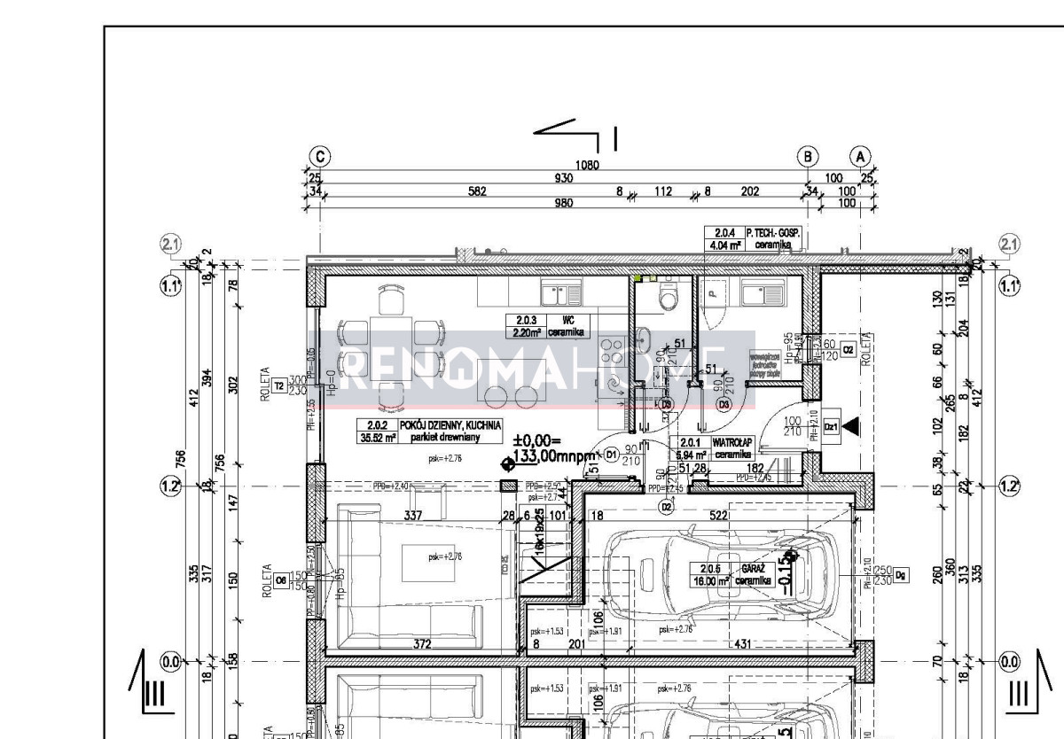 - garaż w bryle budynku
