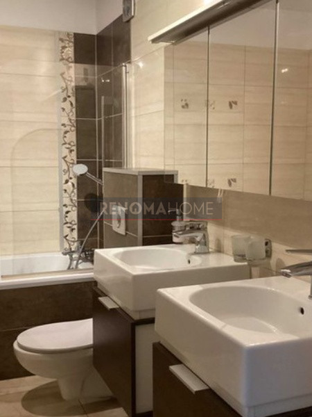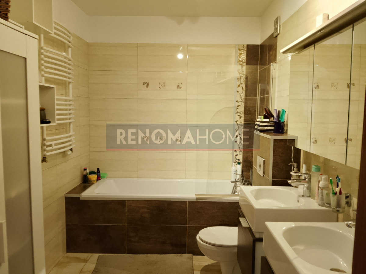 Kuchnia jest w pełni umeblowana i wyposażona w sprzęt AGD: lodówkę, zmywarkę, kuchenkę, piekarnik oraz okap. Blat kuchenny wykonany z wysokiej jakości kompozytu.