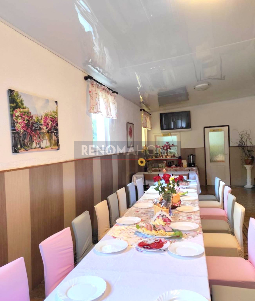 Dwa budynki połączone ze sobą: część hotelowa i mieszkalna o łącznej powierzchni 320m2. Łączna powierzchnia mieszkalna (część prywatna): ok. 88 m2. Budynek hotelowy i mieszkalny podpiwniczony, dodatkowo garaż.