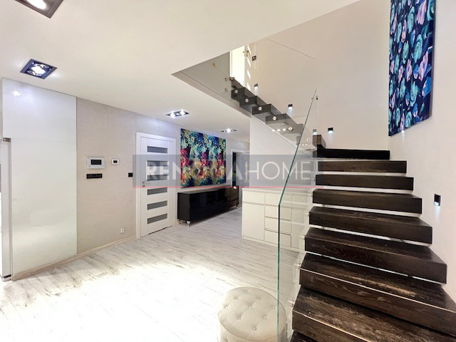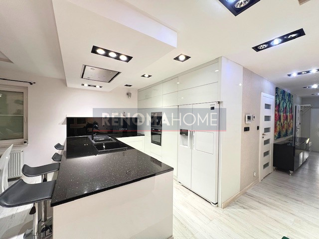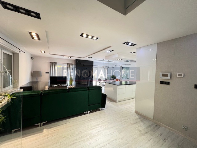 Designerskie oświetlenie podkreśla nowoczesny, a jednocześnie przytulny charakter wnętrza.