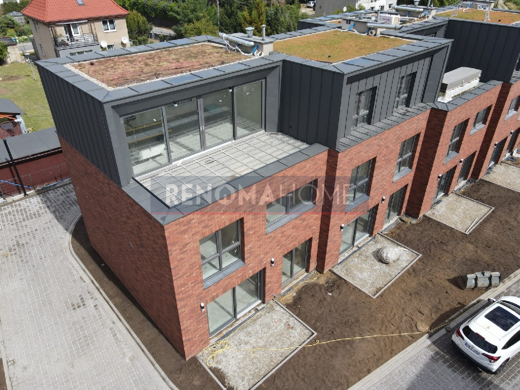 nowoczesny dom w zabudowie bliżniaczej o powierzchni 144,61 m2 w kameralnej inwestycji położonej we Wrocławiu w dzielnicy Leśnica , w bezpośrednim sąsiedztwie Lasu Mokrzańskiego.
