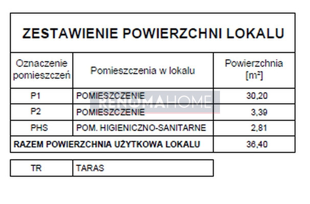 NAJWAŻNIEJSZE INFORMACJE:- powierzchnia lokalu: 36,40m2;
