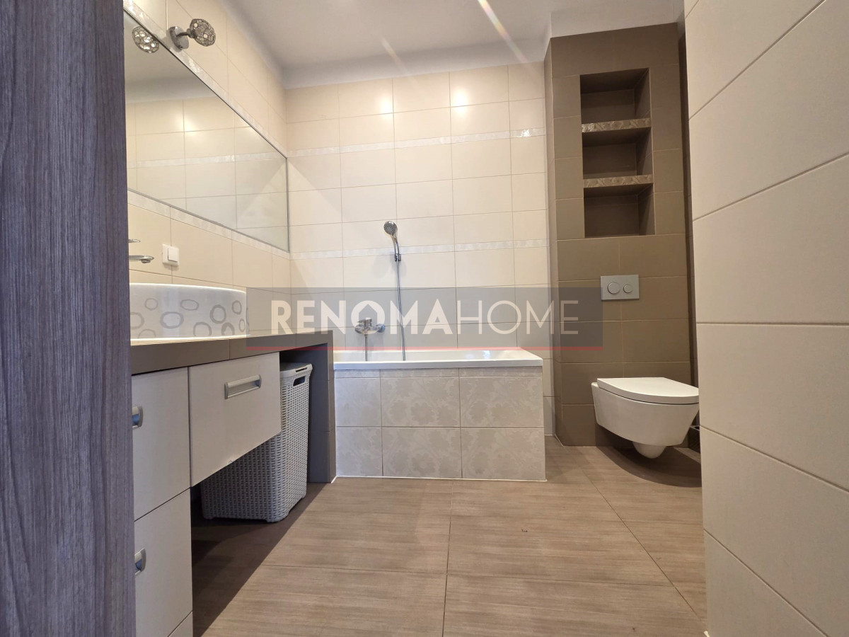 - Łazienka z dużą wanną i funkcją prysznica (5,6 m2),