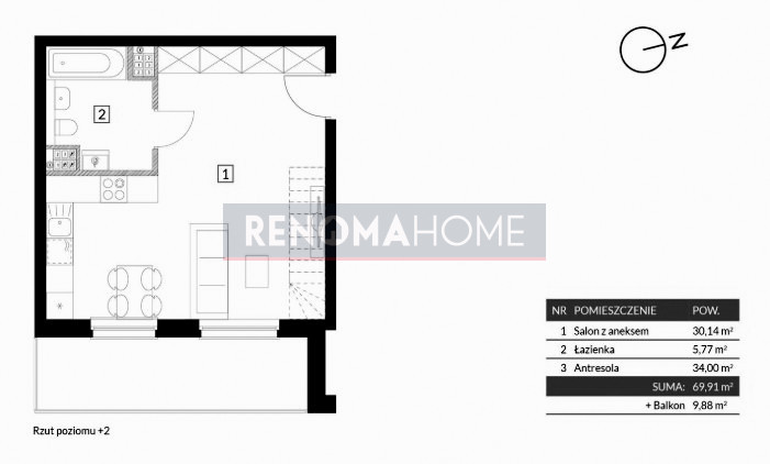 Prezentowana nieruchomość ma metraż 69,91 m².