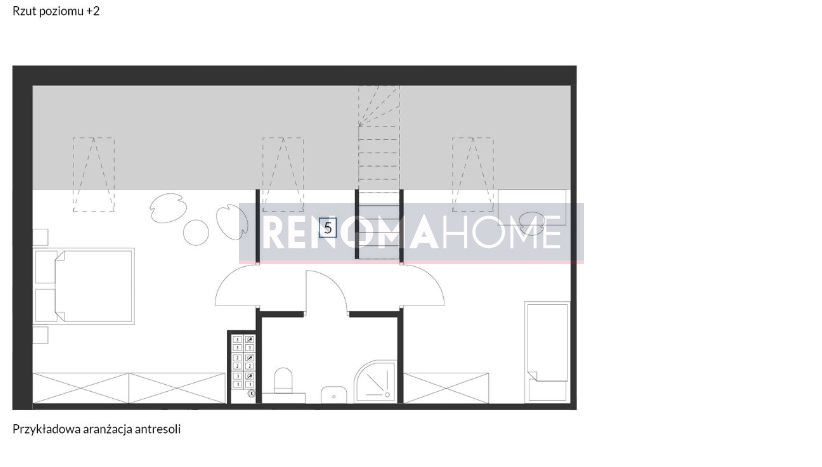 Mieszkanie o łącznej  powierzchni 93,05m2 usytuowane na 2 piętrze z dużym balkonem i antersolą o powierzchni  37m2.