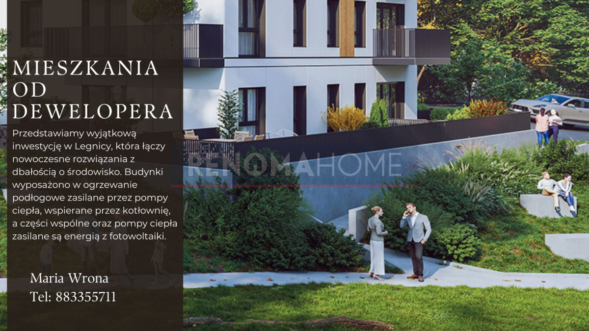 Kameralne osiedle zapewnia spokój, a jednocześnie szybki dojazd do centrum Legnicy. W pobliżu znajdują się sklepy, szkoły, punkty usługowe oraz tereny rekreacyjne. Dogodny dostęp do tras S3 i A4 ułatwia codzienne poruszanie się.