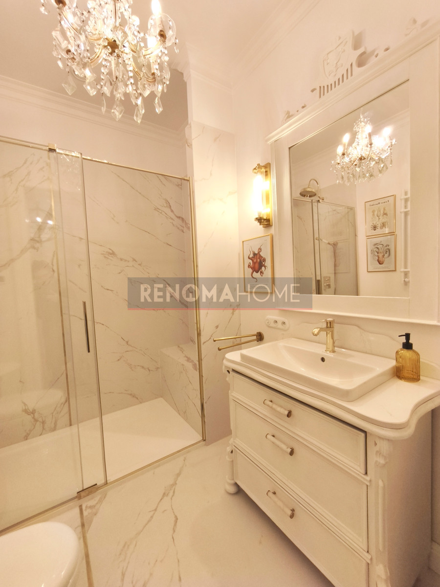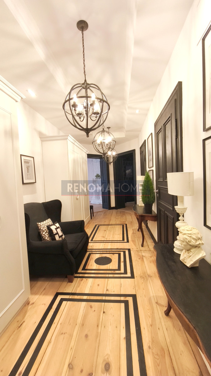 Mieszkanie przeszło gruntowny remont od podstaw, budowa pionów wodno-kanalizacyjnych, instalacji elektrycznej i gazowej. Wszystkie grzejniki do c.o. wykonane na zamówienie aby zachować styl mieszkania. Została odrestaurowana oryginalna drewniana stolarka - podłogi, drzwi i częściowo okna, czynne trzy piece kaflowe z czasów przedwojennych, wszystkie oryginalne ornamenty na suficie. Mieszkanie urządzone w stylu art Deco i eklektycznym.