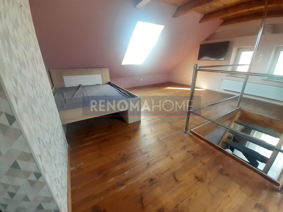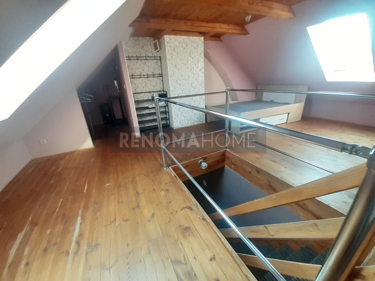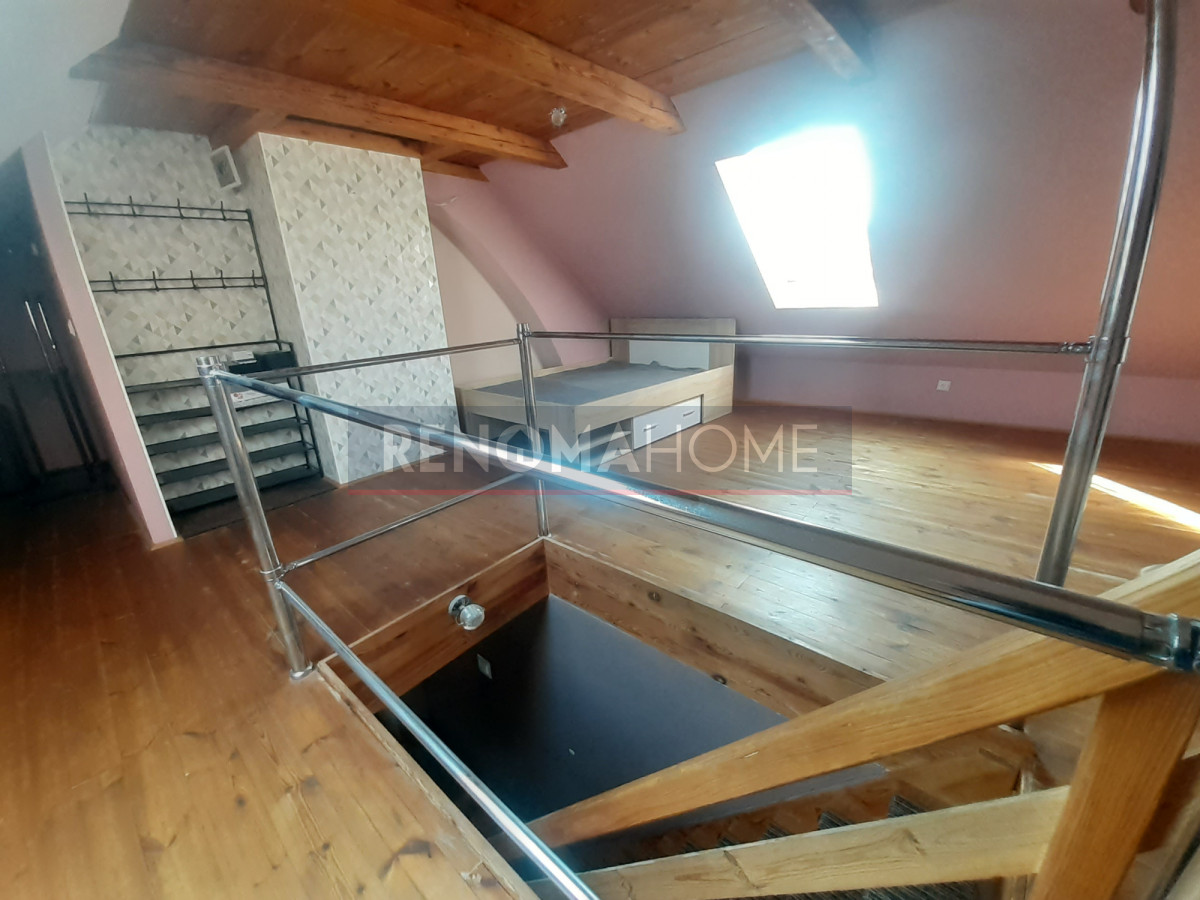 Z jednego z pokoi wychodzą schody prowadzące na zaadoptowaną i wykupioną część strychu z kolejną sypialnią
