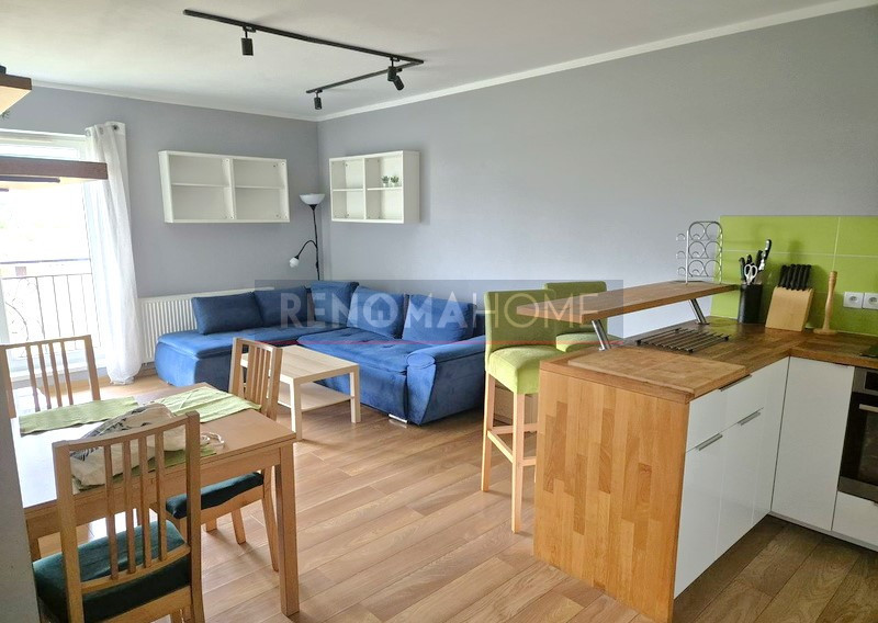 - Przestronny salon z aneksem kuchennym i wyjściem na balkon
