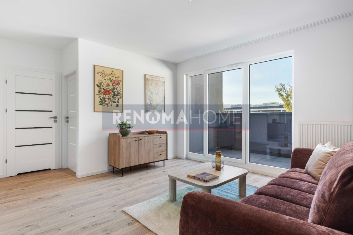 2 pokoje, 2 tarasy na nowoczesnej Kępie Mieszczańskiej. Mieszkanie z ekspozycją wschód-zachód, wykończone i gotowe do zamieszkania.