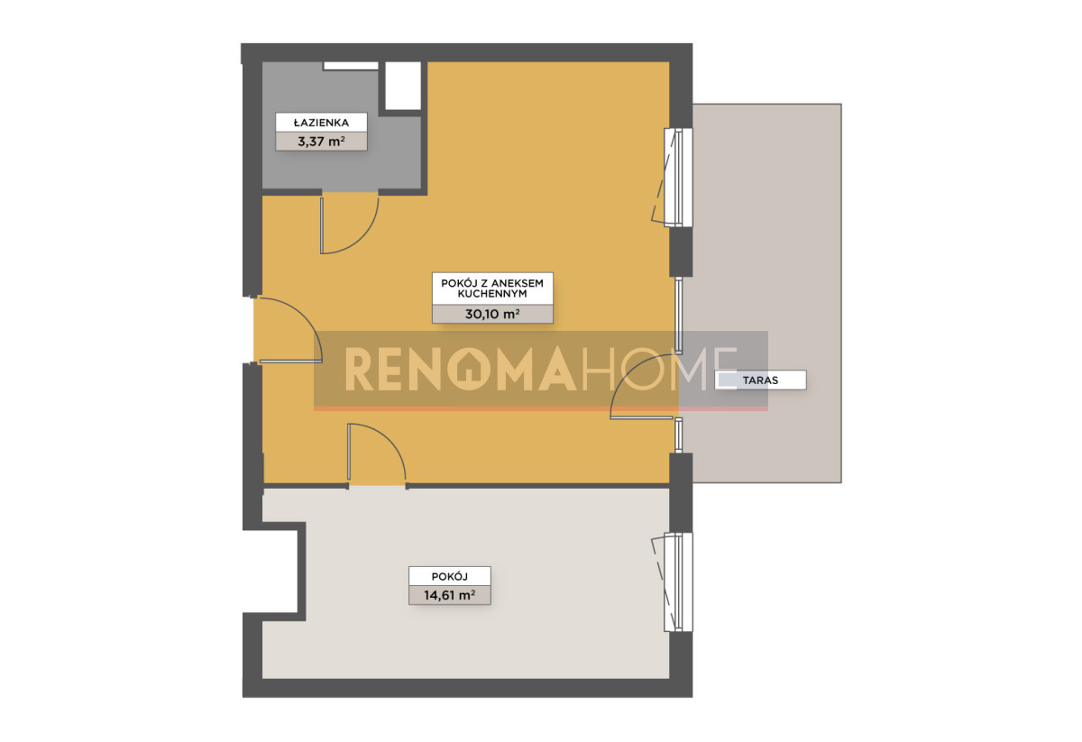 - przestronny salon z aneksem kuchennym (30.1m2), z wyjściem na taras