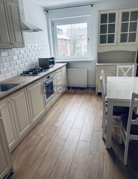 Kuchnia jest w stylowej zabudowie meblami na wymiar, w pełni wyposażona w sprawny sprzęt AGD.