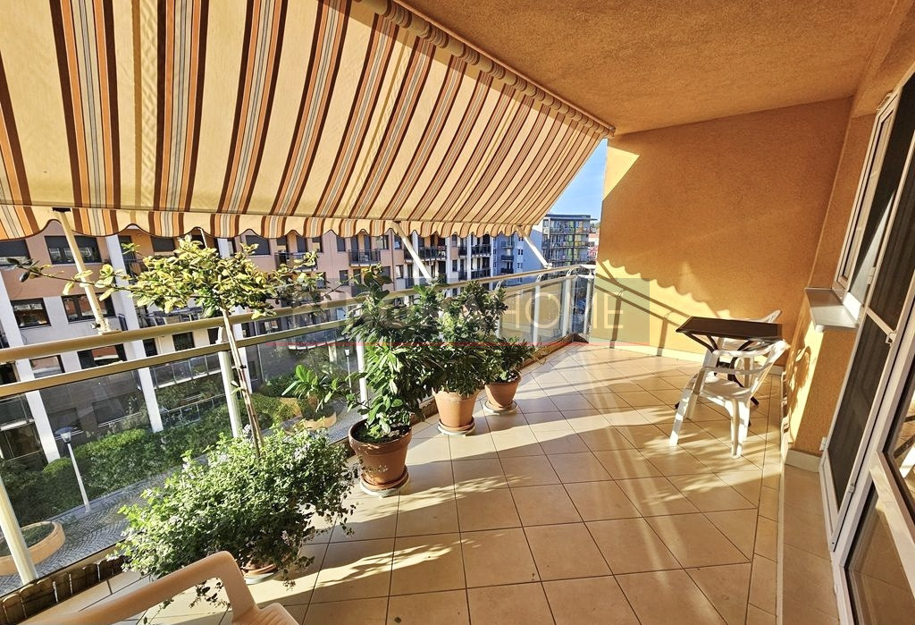 duża, zadaszona loggia z markizą