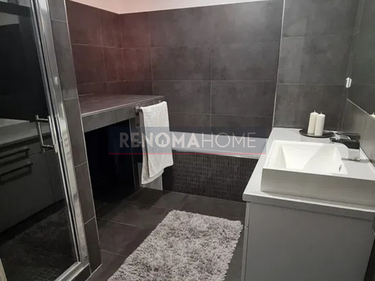 - łazienka wyposażona w wannę oraz kabinę prysznicową