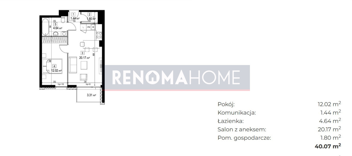 - salon z aneksem kuchennym,