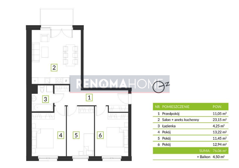 Powierzchnia 76.06 m²
