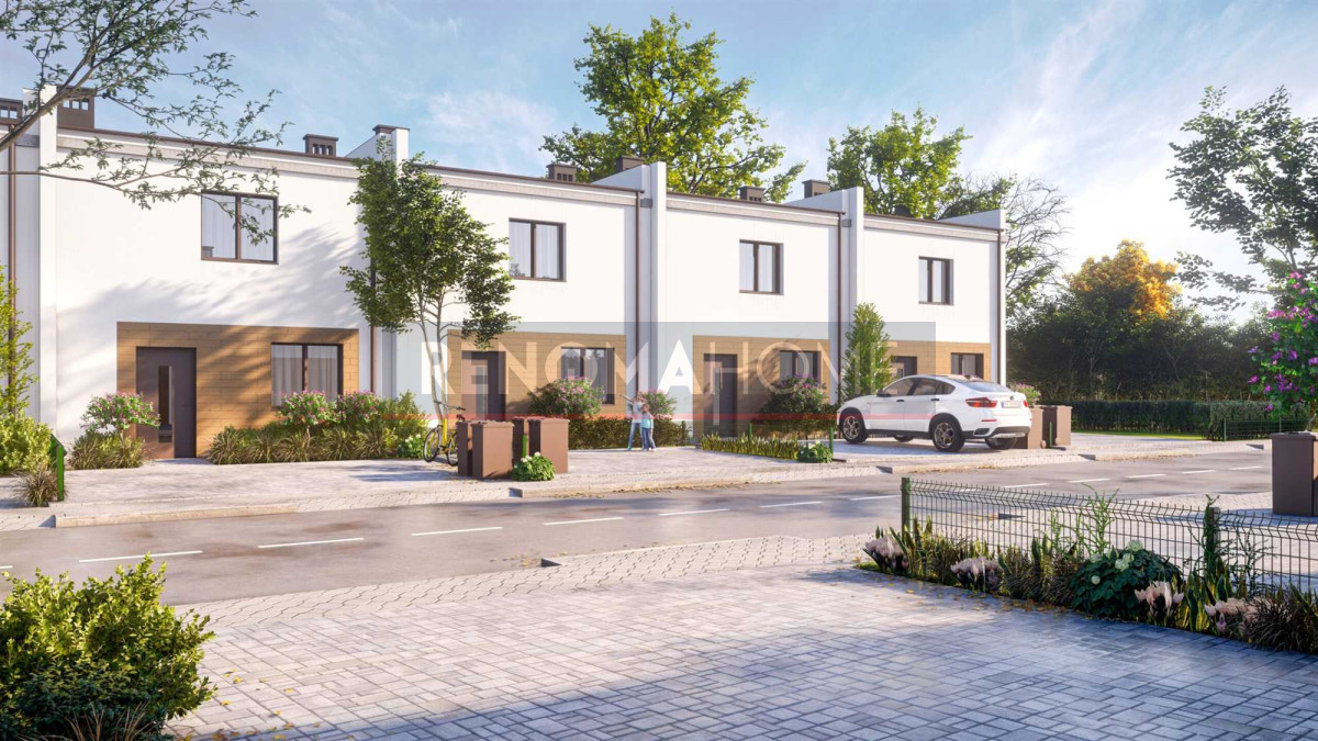Każdy dom ma własny ogród, na podjeździe miejsce parkingowe.