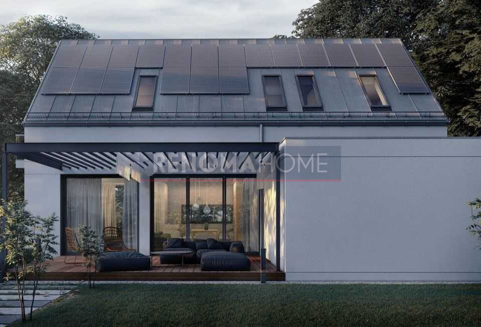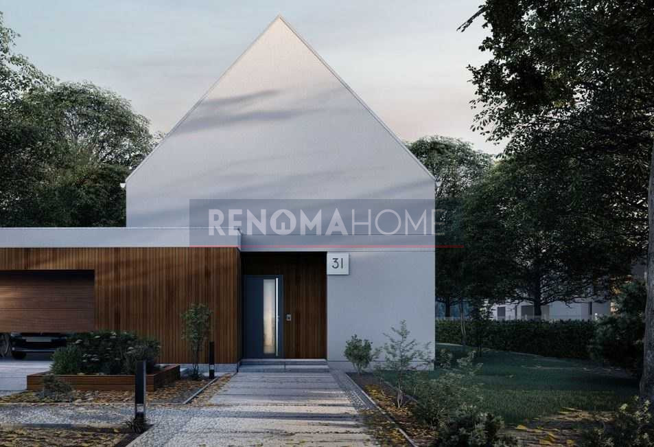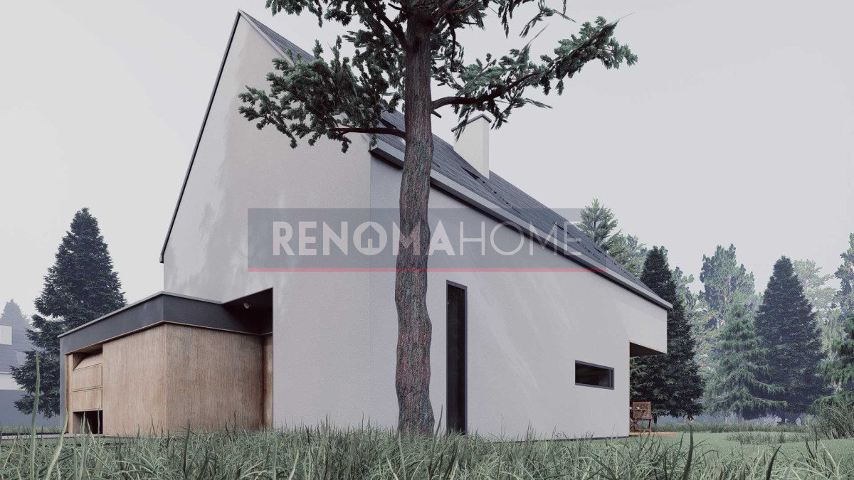 Oferta  obejmuje działkę o powierzchni 1233 m2 wraz z budynkiem mieszkalnym w stanie deweloperskim projektu ZeroHouse 142 solare.