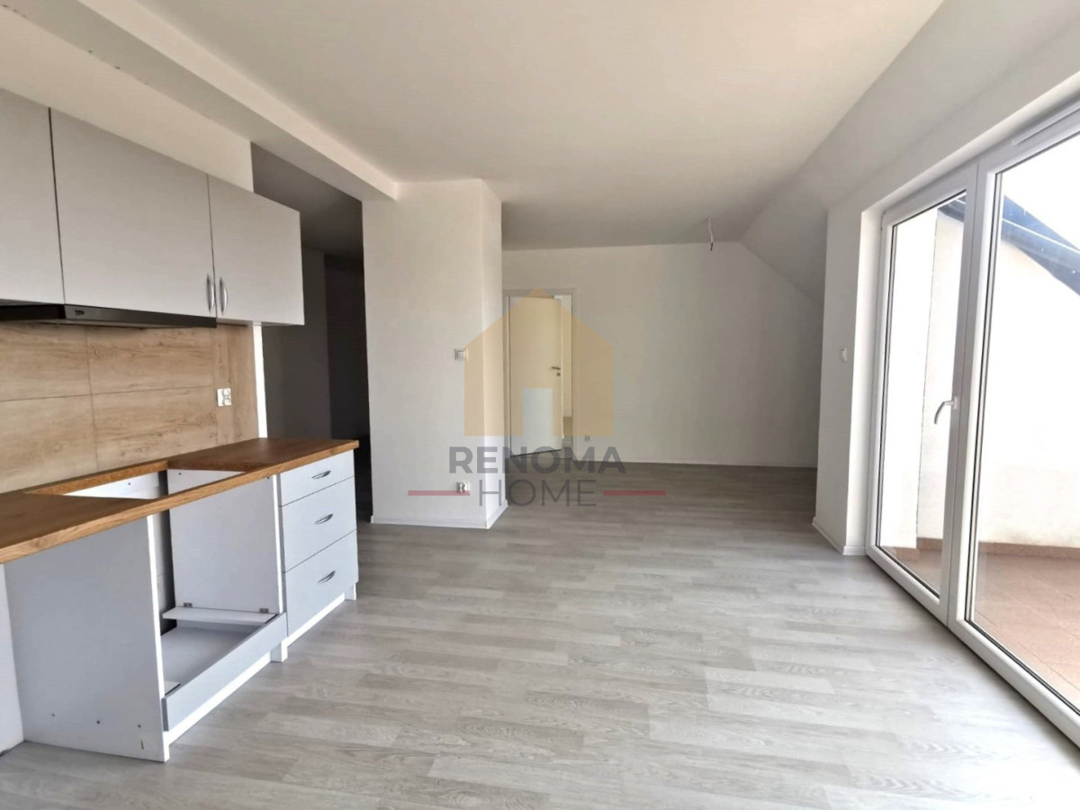 -salon z aneksem kuchennym i wyjściem na taras
