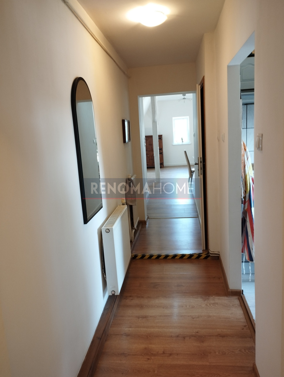 Mieszkanie rozkładowe składające się z 3 pokoi, kuchni, łazienki z WC, spiżarki, garderoby, przedpokoju, pomieszczenia gospodarczego oraz dodatkowego pomieszczenia strychowego o pow. 16,50m – wymiar po podłodze 7,5×6,5m, ocieplane okna dachowe drewniane, 3 szybowe z markizą, podłoga docieplona.