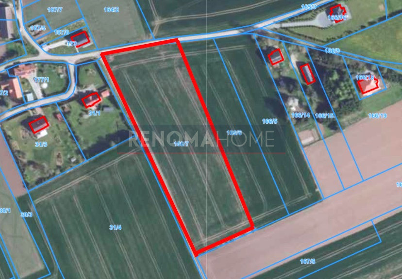 Wygodna, prostokątna działka przy drodze dojazdowej. Świetne miejsce dla rolnika, który jeszcze nie wybudował domu, a chciałby pracować i mieszkać w okolicy. Wygodna w uprawie.