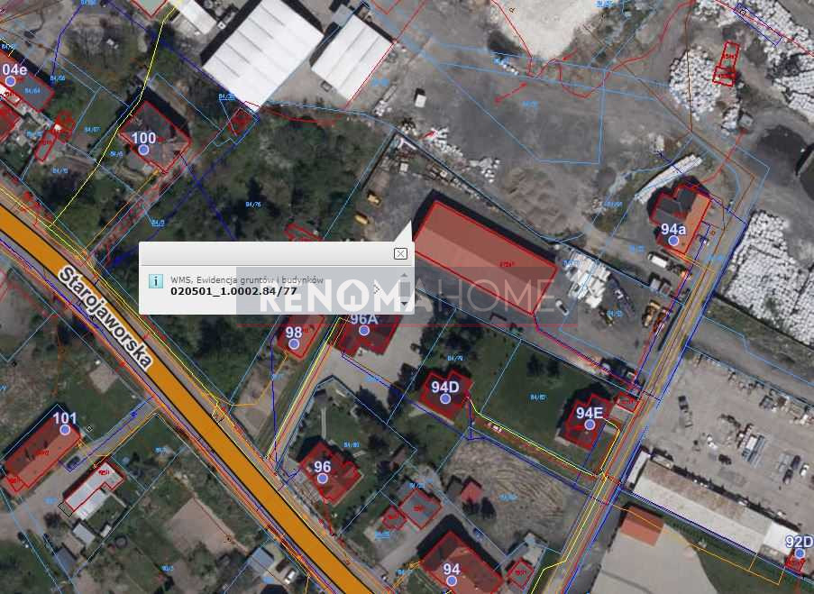 Działka ewidencyjna 84/77 o powierzchni 2.643m2 przy ul. Starojaworskiej zabudowana halą magazynową z przeznaczeniem na cele produkcyjno-usługowo- magazynowe. Jest to budynek wolnostojący, parterowy bez podpiwniczenia. Jego budowę niedawno zakończono. Na terenie nieruchomości zamontowano dwa kontenery z przeznaczeniem na cele socjalne.