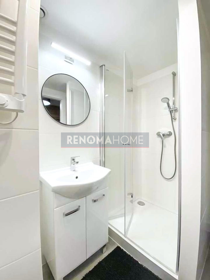 - Łazienka z prysznicem, wykończona w wysokim standardzie.