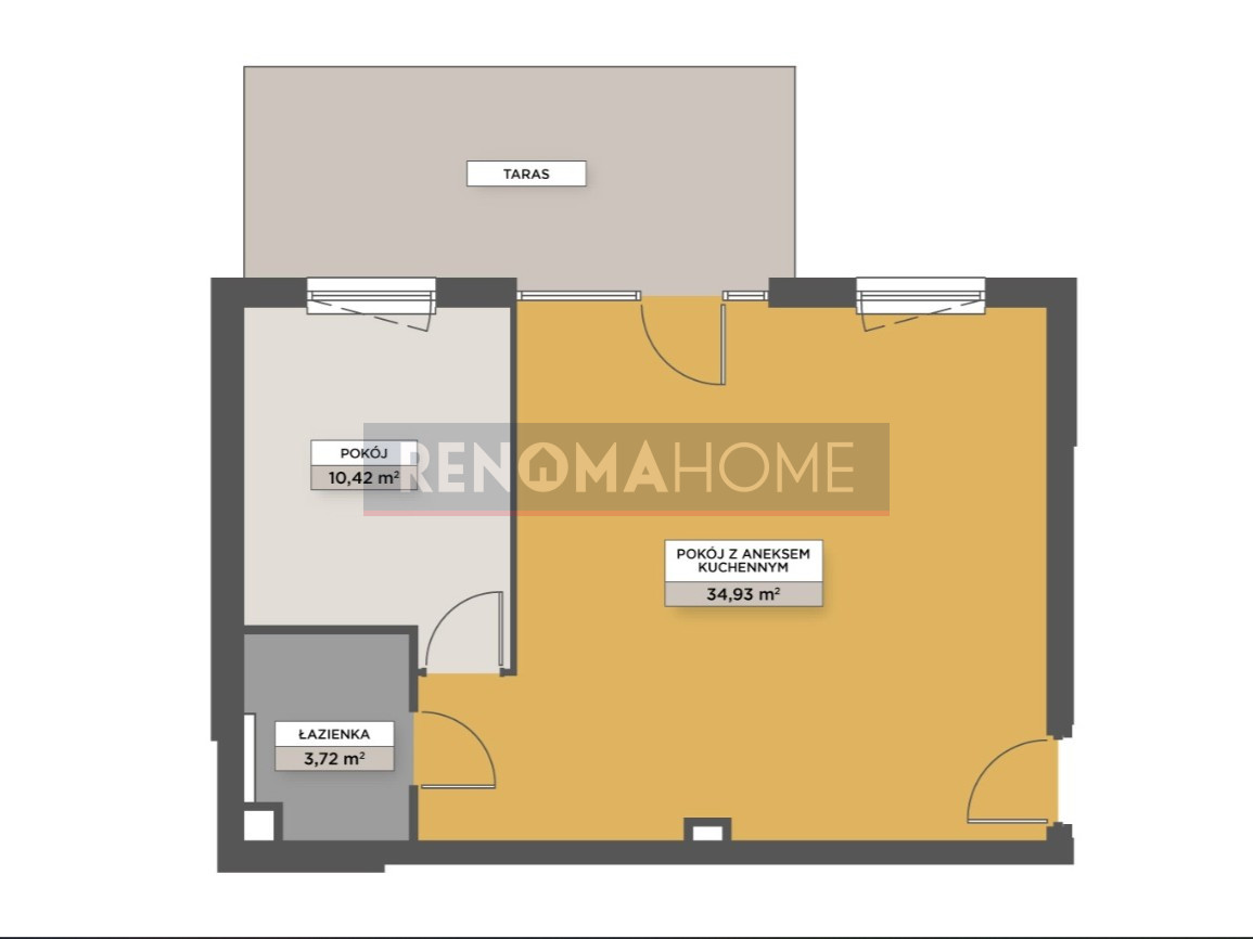 – Salon z aneksem kuchennym – 34,93 m²
