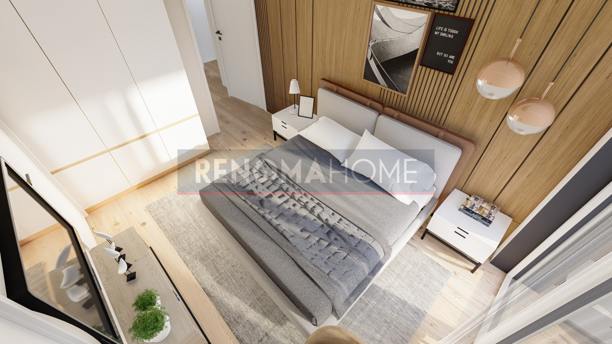 Sypialnia (13,09 m²) z wyjściem na balkon (5,04 m²)
