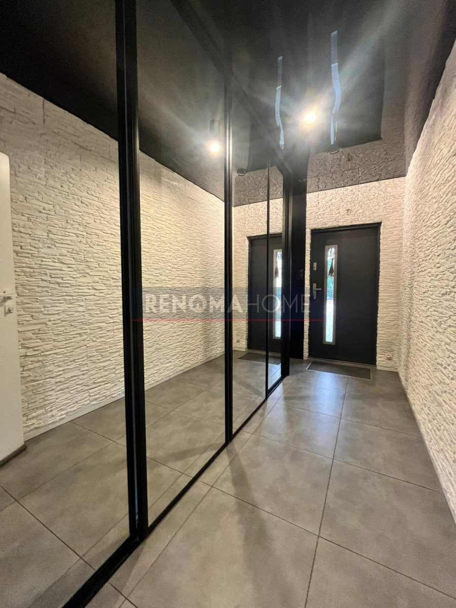 przestronny, jasny salon z kuchnią i bezpośrednim wyjściem na taras oraz ogród tworzy naturalną przestrzeń do życia i spotkań. Dodatkowe pomieszczenie — obecnie siłownia z sauną— daje elastyczność aranżacji (gabinet, pokój gościnny, biuro). Całość uzupełnia łazienka i komfortowy hol.