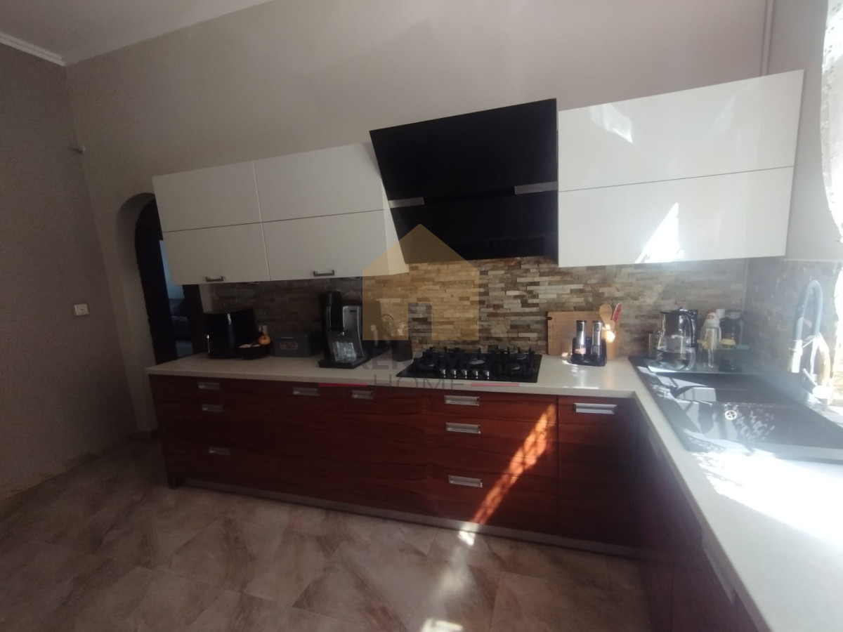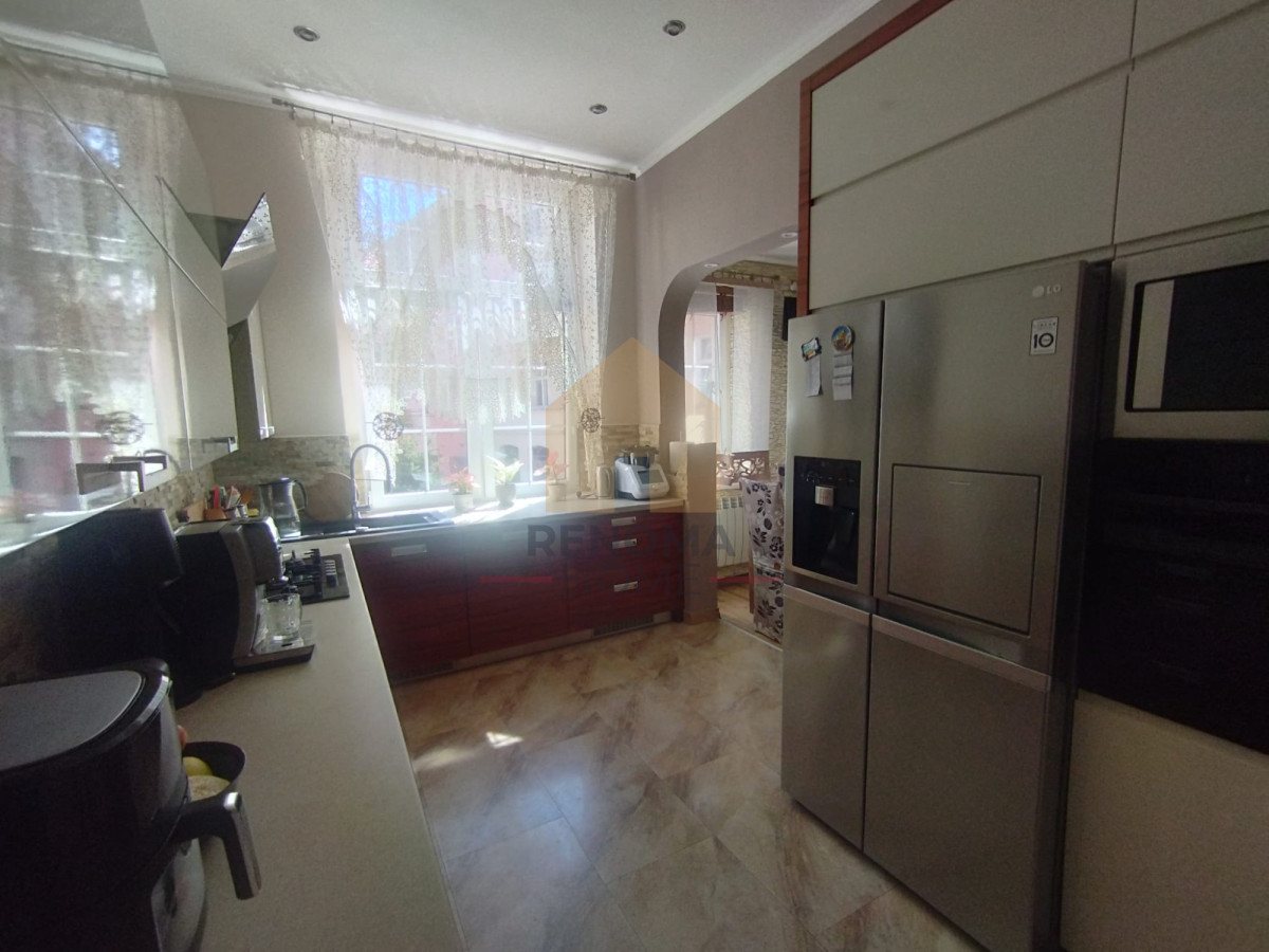– Kuchnia – 19 mkw oraz łącząca się z kuchnią jadalnia – 4,4 mkw – na podłodze glazura, meble w zabudowie stałej ze sprzętem AGD: zmywarka, lodówka, płyta gazowa, piekarnik, okap, mikrofalówka – pozostają w cenie mieszkania, w części jadalnej w zabudowanej ścianie zlokalizowana pralka oraz suszarka