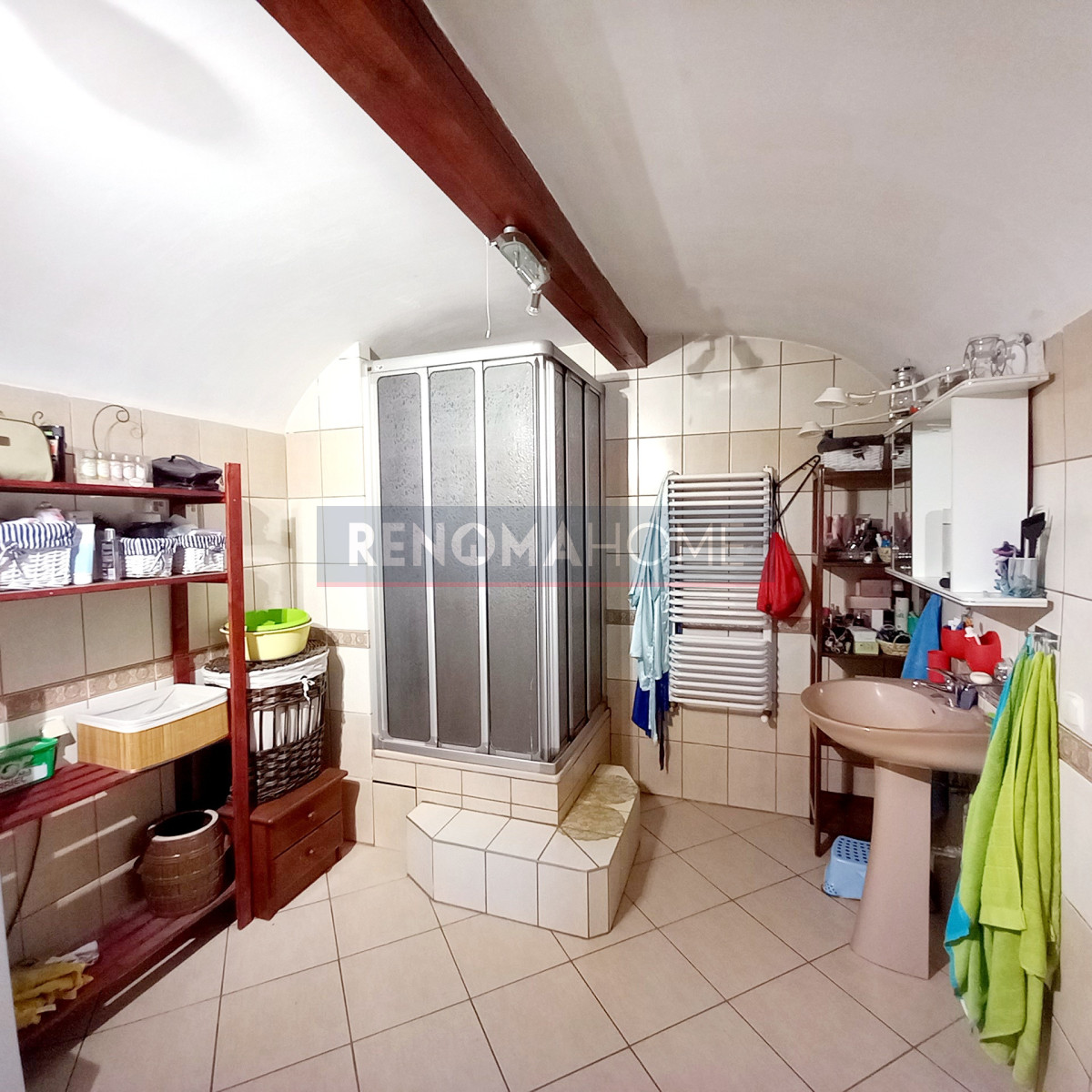 W domu jest podłączona do kanalizacja ogrzewany na ekogroszek.