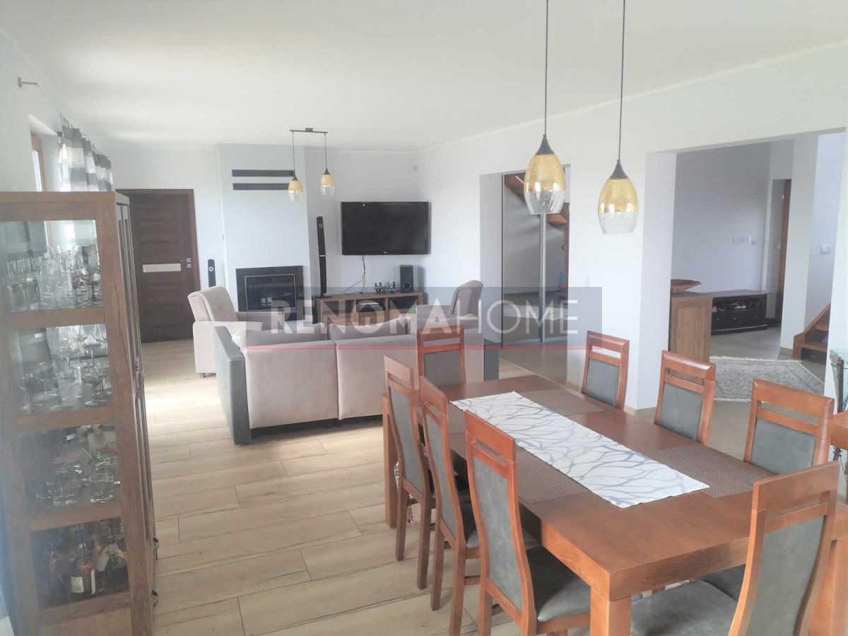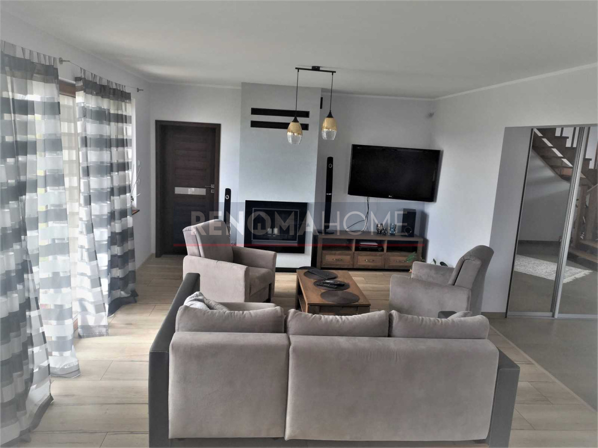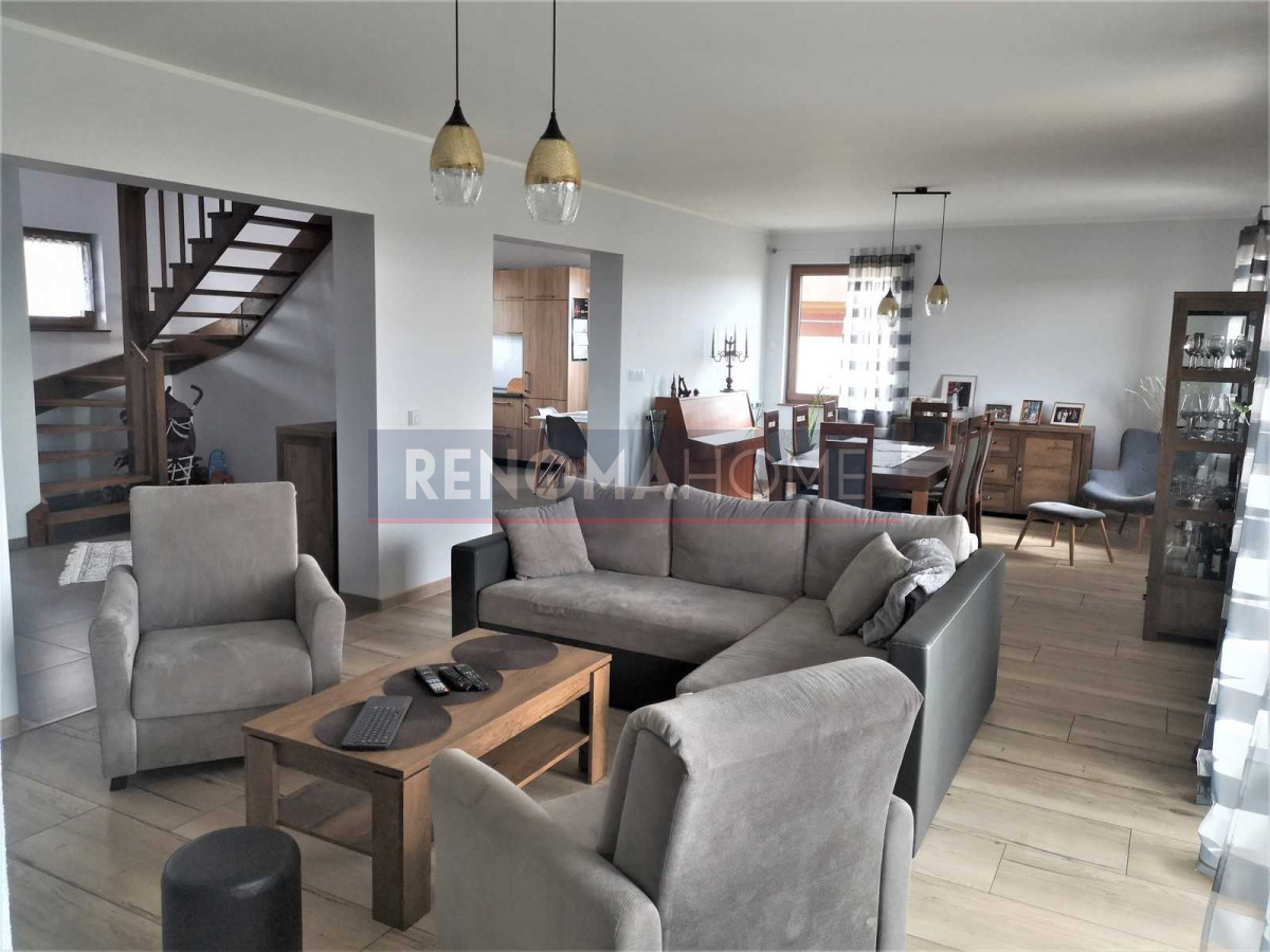 Dodatkowo w bryle domu duży garaż. Teren ogrodzony i zamykany automatyczną bramą na pilota.