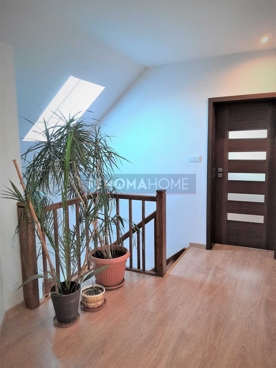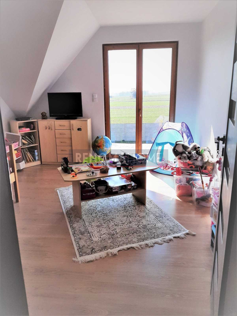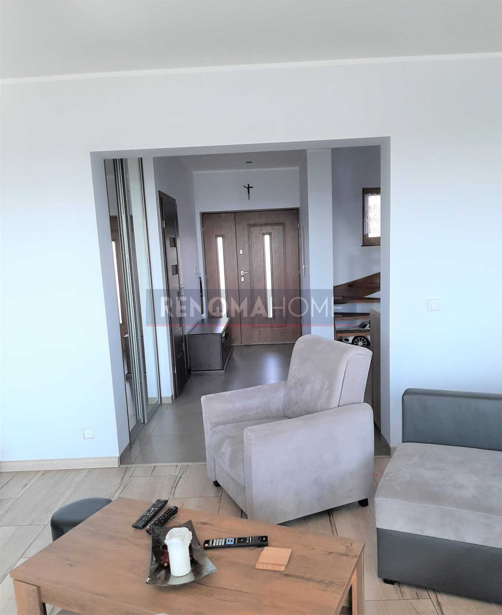 Dodatkowo w bryle domu duży garaż. Teren ogrodzony i zamykany automatyczną bramą na pilota.