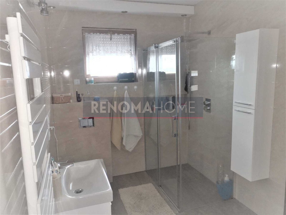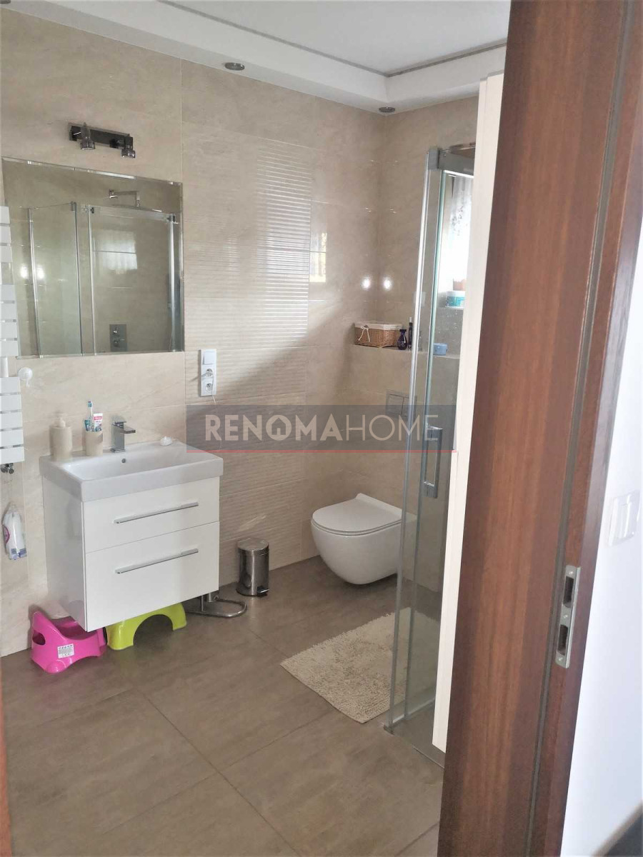 Udogodnienia: ogrzewanie gazowe podłogowe w całym domu, zasilane paliwem gazowym z podziemnej butli przydomowej systemu Gaspol (koszt ok 800 zł w sezonie zimowym), woda ciepła z podłączenia z fotowoltaiki 10KW, kominek o mocy 20 KW z automatycznym rozprowadzeniem w całym domu, bioekologiczna oczyszczalnia przydomowa, stacja uzdatniania wody, rolety antywłamaniowe sterowane automatycznie, niskie koszty wody miejskiej (tylko 4,30 zł. za m3), przygotowana instalacja do podłączenia solarów, kamer i wideo domofonu, okna trzyszybowe, drzwi i schody drewniane, w łazience przygotowane miejsce i instalacja pod saunę infrared.