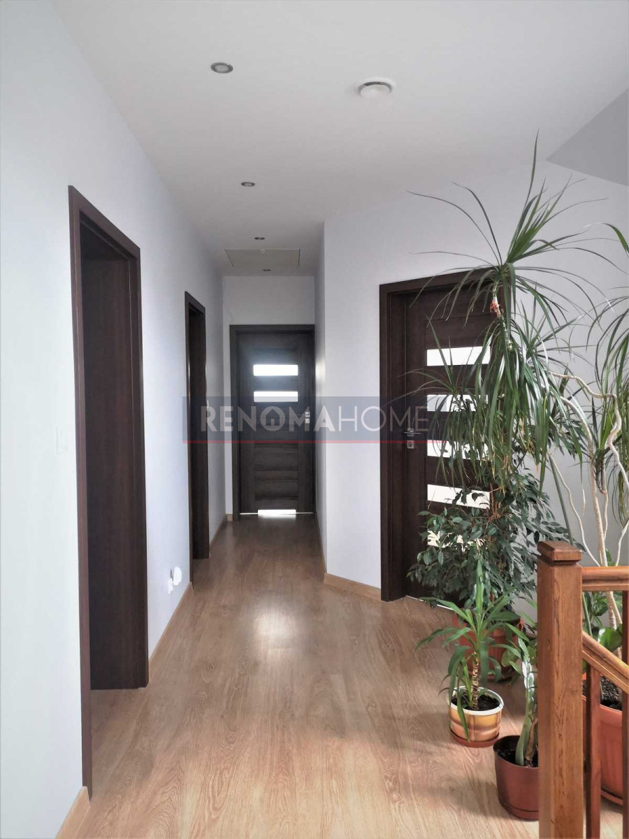– na pierwszym piętrze trzy sypialnie, z dwóch wyjście na duży balkon, każdy pokój z własną garderobą, łazienka z toaletą, pokój office, hall.