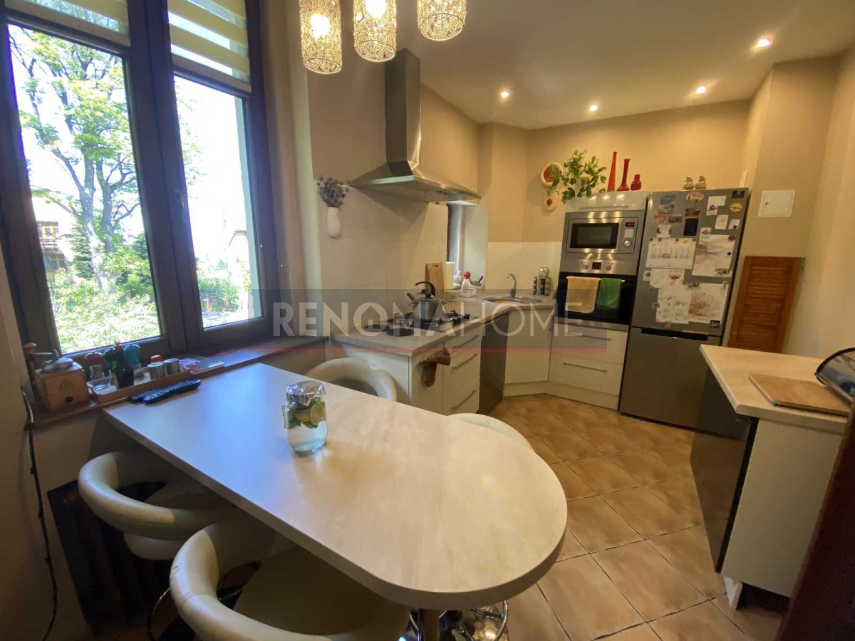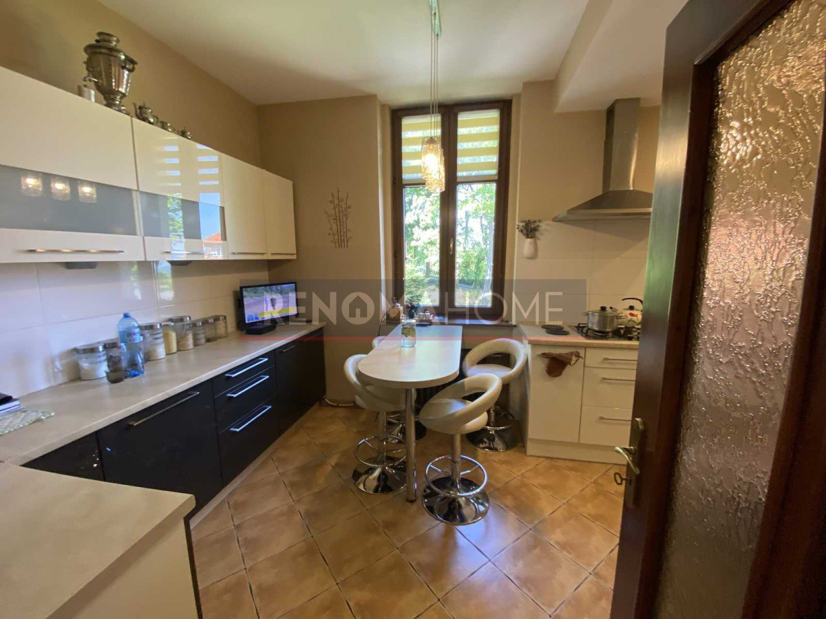 Do sprzedania stylowe mieszkanie mieszczące się w turystycznej miejscowości Złoty Stok . Mieszkanie o powierzchni aż 100,32m 2 , składająca się z przestronnego salonu , sypialni z wyjściem na przepiękny drewniany balkon z którego rozprzestrzenia się przepiękna panorama Przedgórza Paczkowskiego , dużego widnego pokoju, słonecznej kuchni z meblami w zabudowie i sprzętem AGD, eleganckiej łazienki , przestronnego przedpokoju, dodatkowo do nieruchomości przynależy komórka o powierzchni 5,66 m2 , garaż dwustanowiskowy o powierzchni ok 30 m 2, malutki ogródek ( dzierżawa ) . Mieszkanie po kapitalnym remoncie , wymieniona instalacja wodno- kanalizacyjna , elektryczna , wymienione drzwi wewnętrzne ( drewno ) i zewnętrzne , okna PCV ( duże , niestandardowe , imitacja drewna ) , na podłodze wysokiej jakości panele podłogowe, ogrzewanie C.O ( wspólnotowa kotłownia). Budynek typu willa położony na niedużym wzniesieniu , w otoczeniu innych zabudowań i lasu . Ogromnym atutem prezentowanej nieruchomości jest przepiękny widok , który możemy podziwiać z balkonu mieszkania . Polecam .