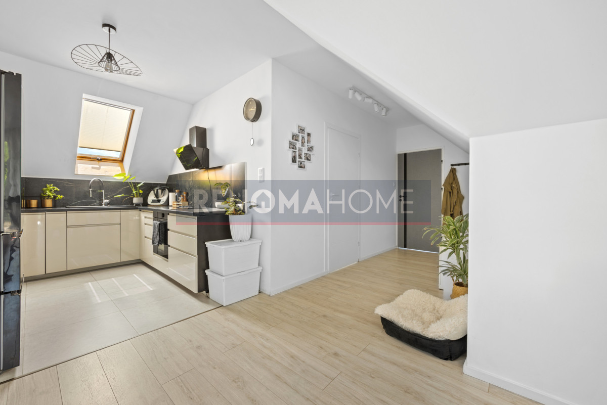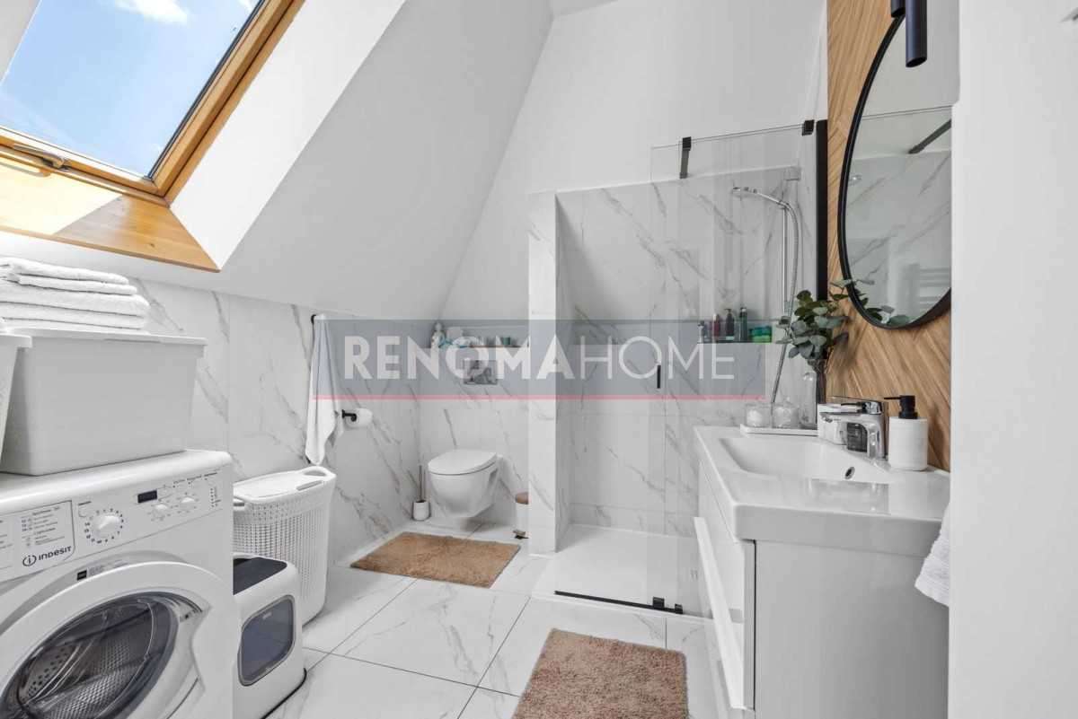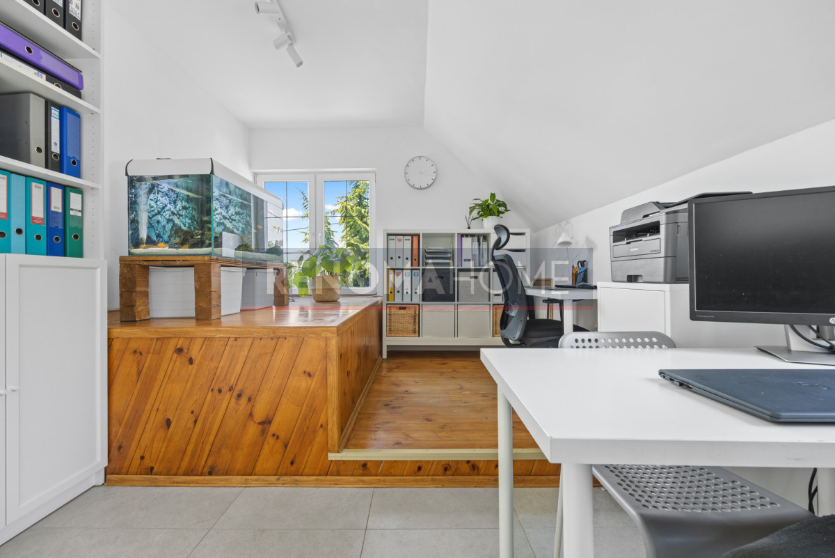 Część mieszkalna po generalnym remoncie obejmującym nową instalację elektryczną, okna dachowe, podłogi oraz łazienkę.