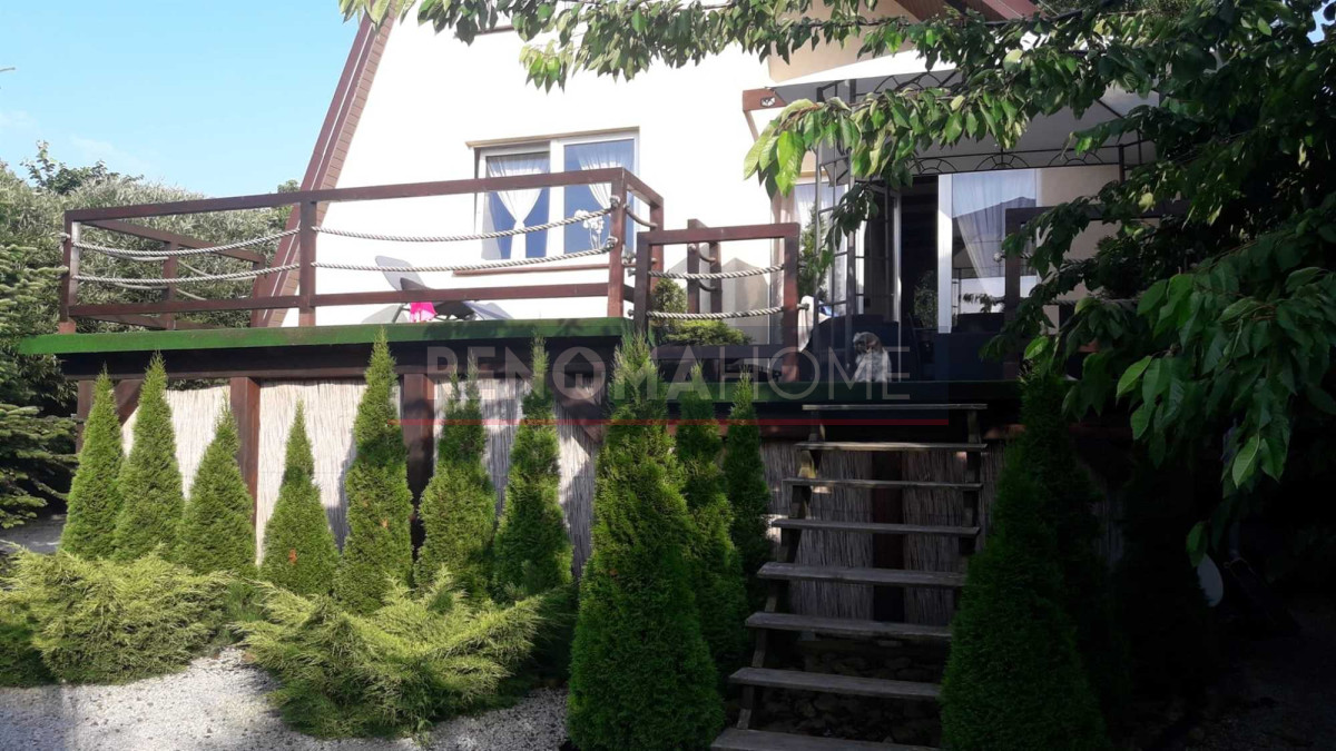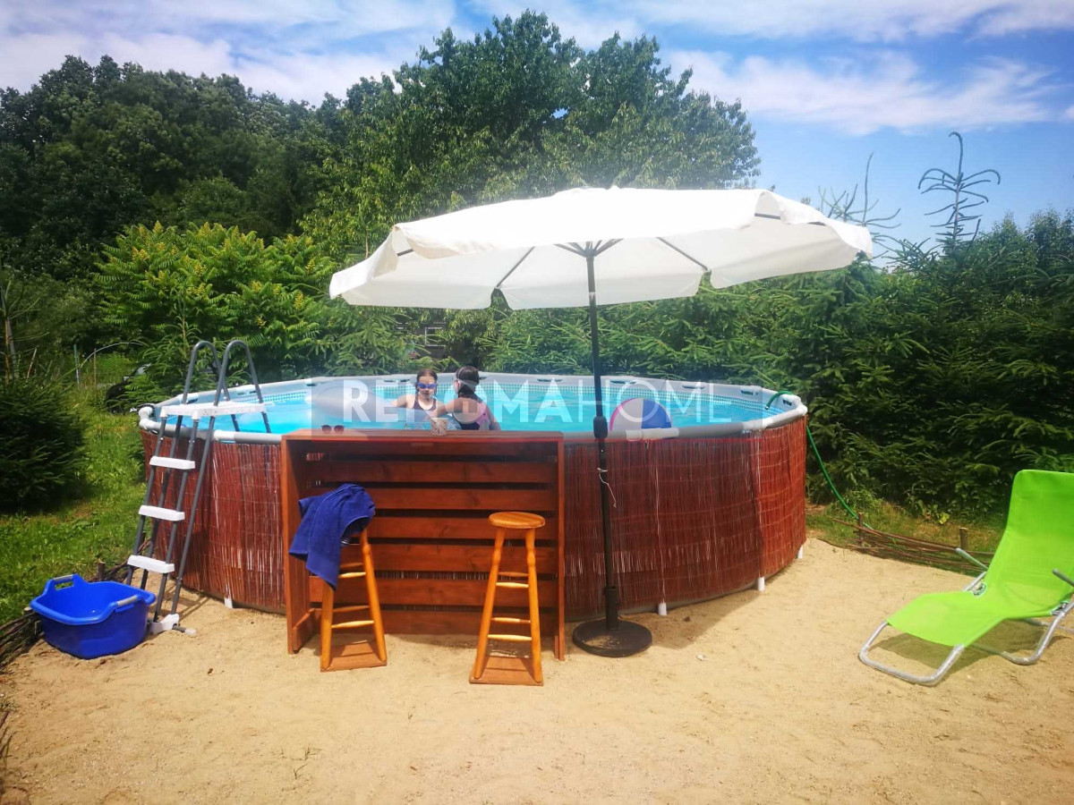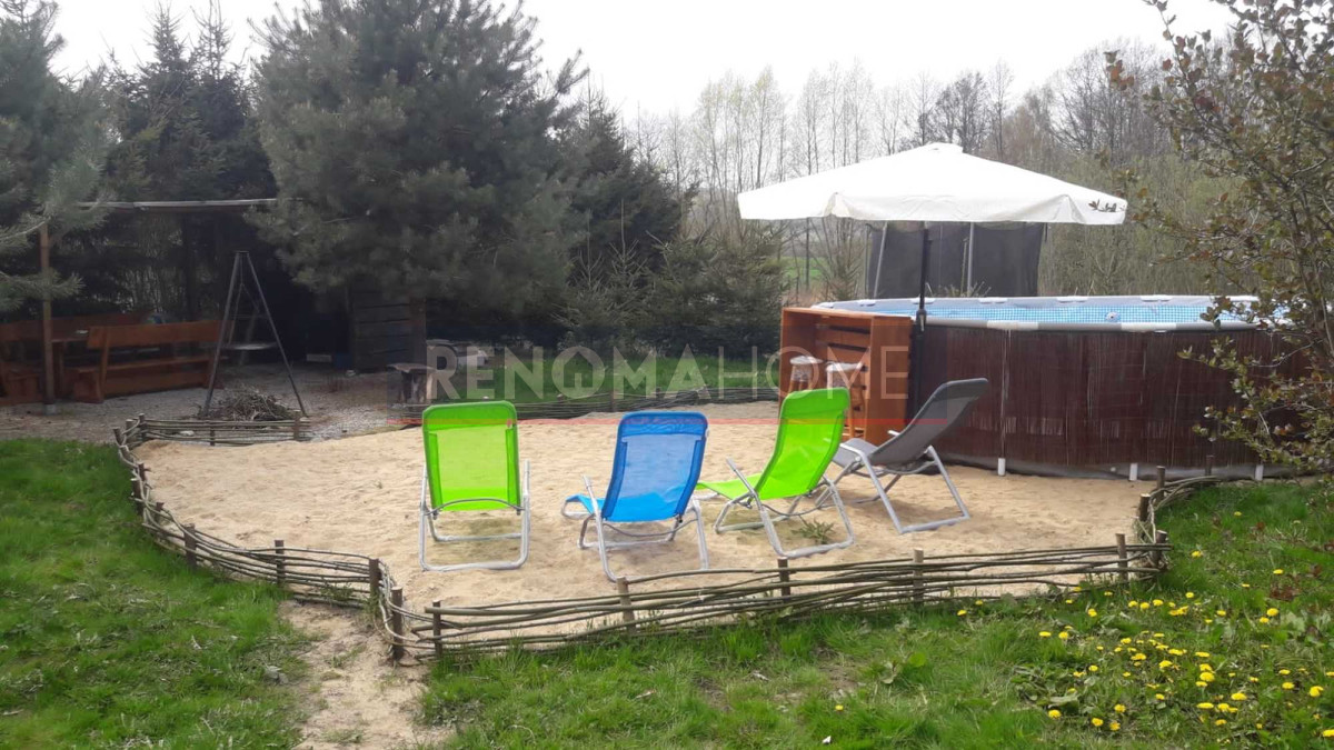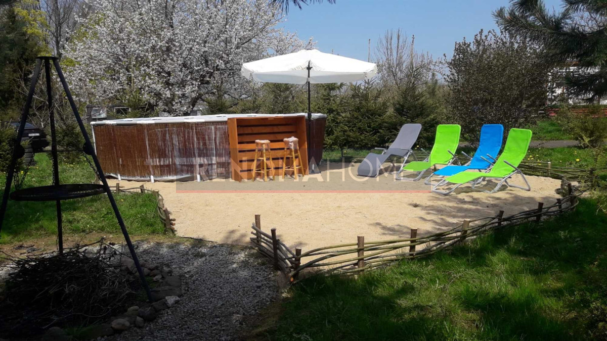Dom otacza ładny ogród, na którym się obecnie znajduje się basen, miejsce na grilla ze stołem i krzesłami.