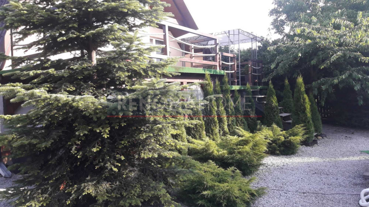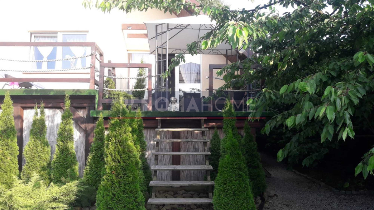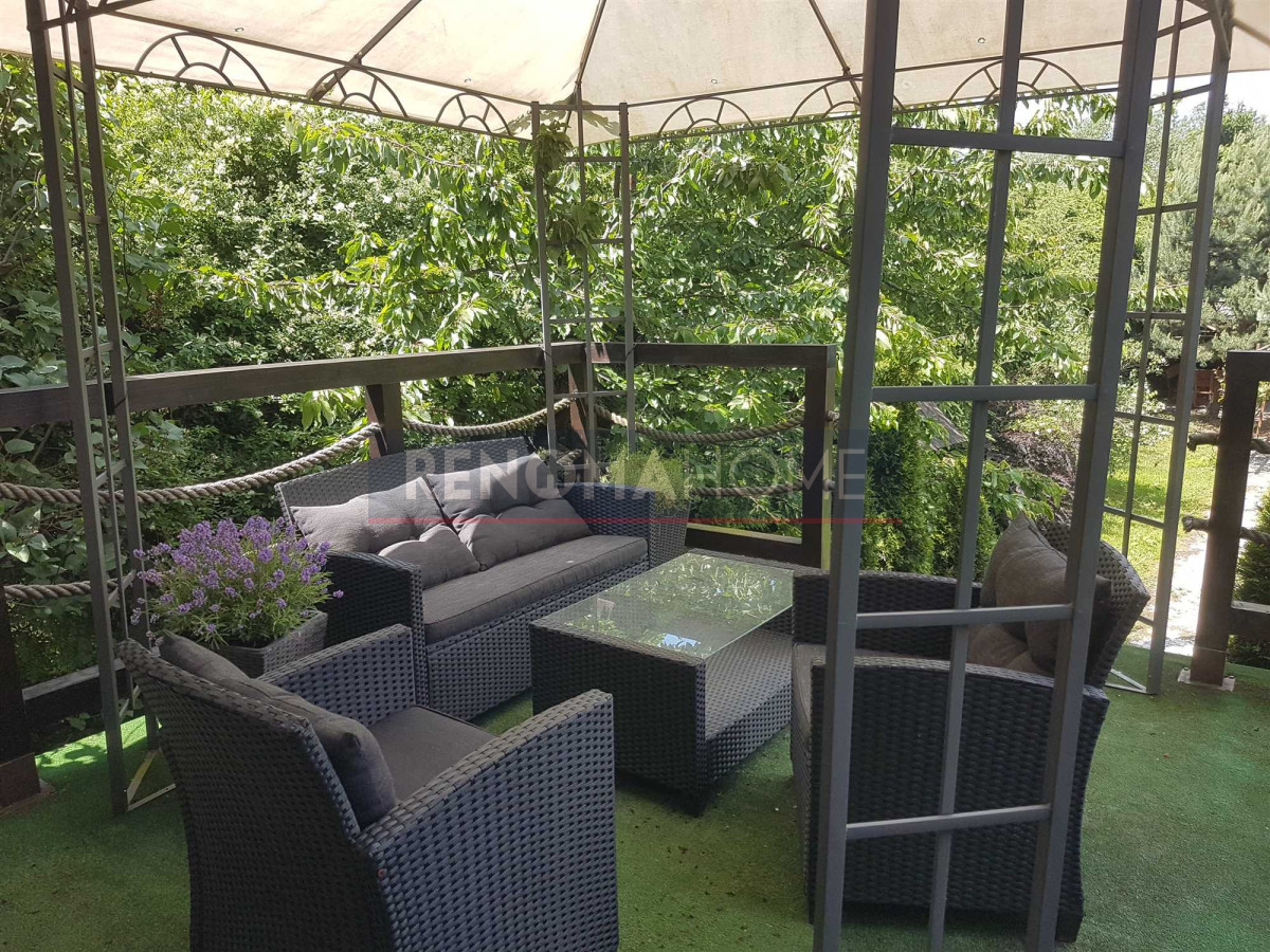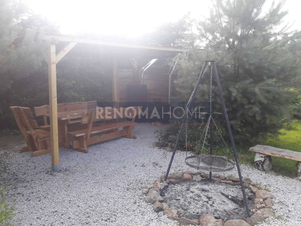 Dom otacza ładny ogród, na którym się obecnie znajduje się basen, miejsce na grilla ze stołem i krzesłami.