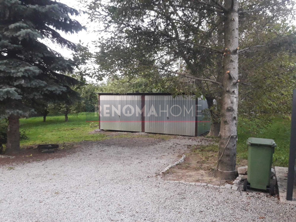 Dodatkowo na działce przed domem znajduje się podwójny garaż blaszany.