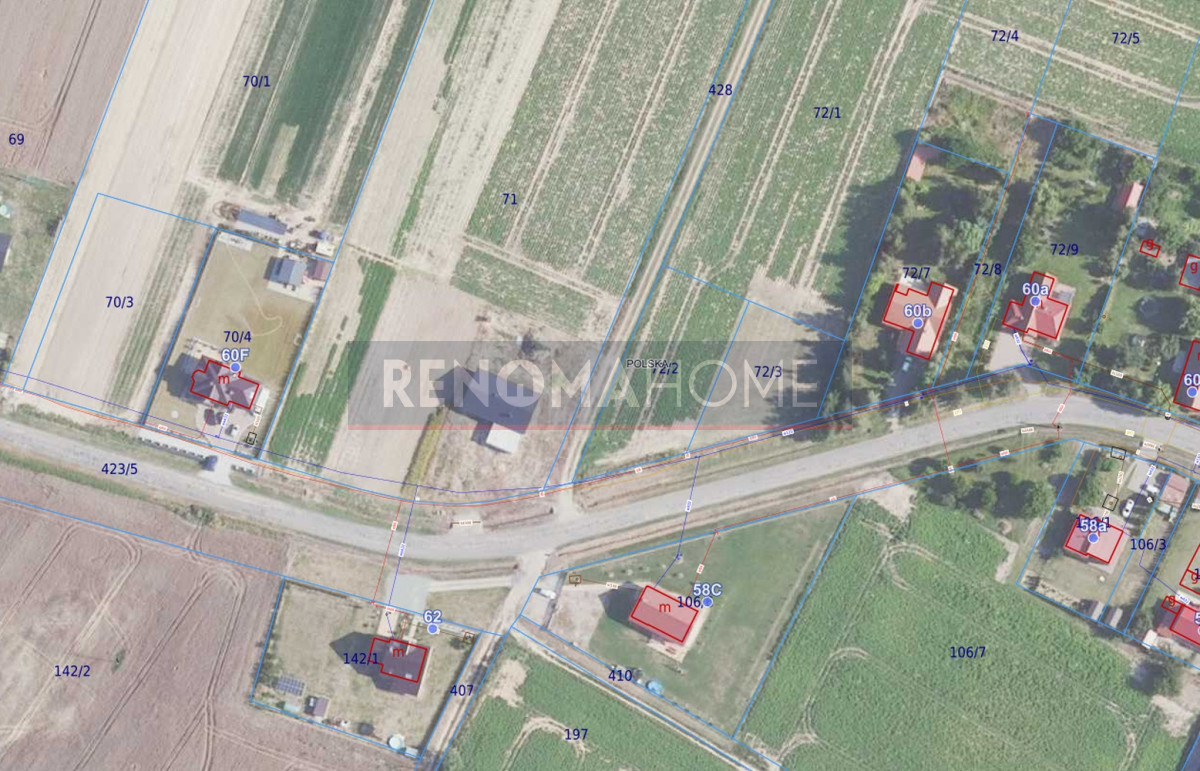 Działka numer 72/2 przy głównej drodze.