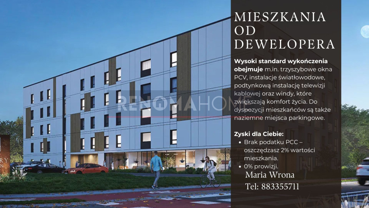 Kupujesz bezpośrednio od dewelopera, co oznacza brak prowizji oraz brak podatku PCC. Inwestycja objęta jest 5-letnią rękojmią.