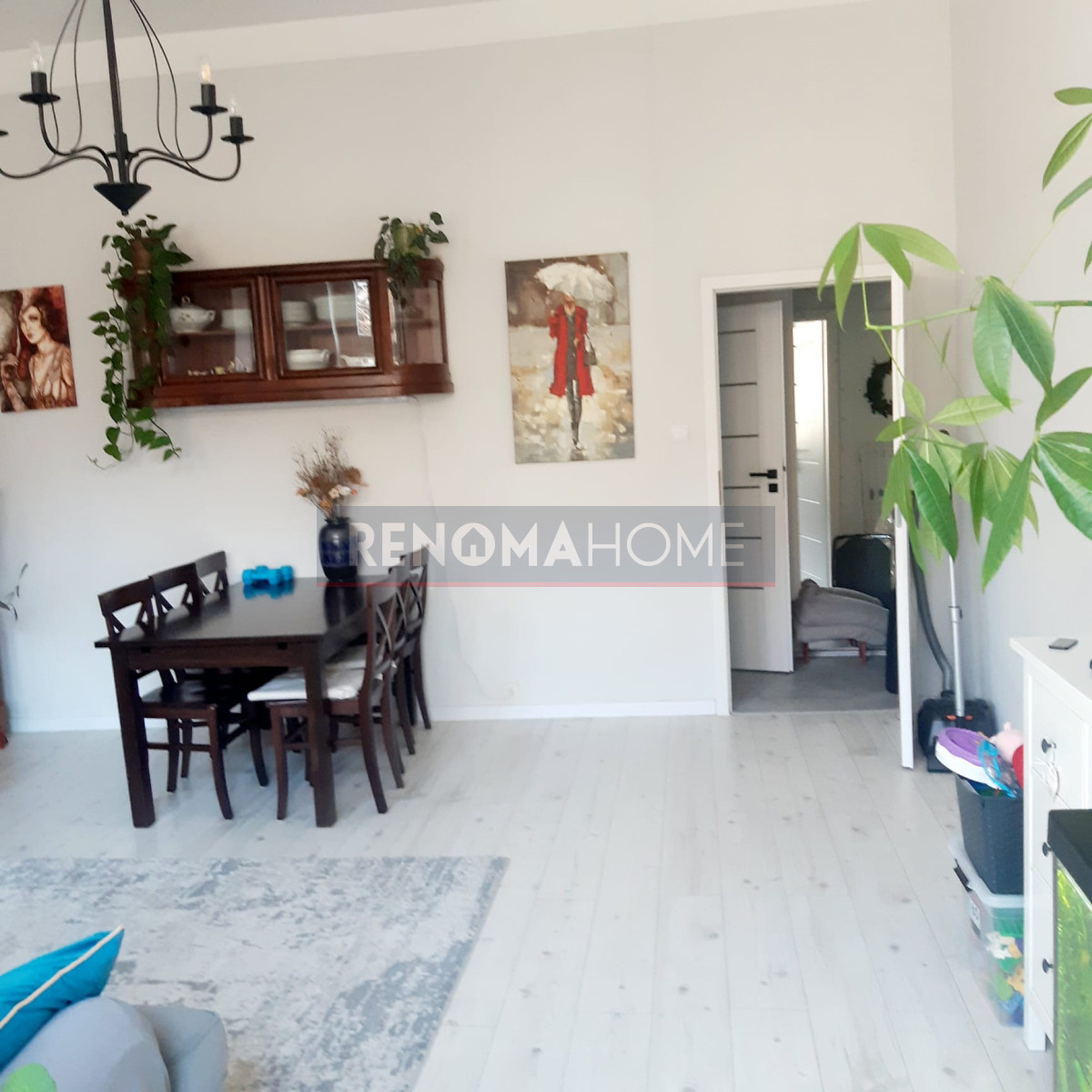W przedpokoju na podłodze panele winylowe, funkcjonalna szafa na odzież.