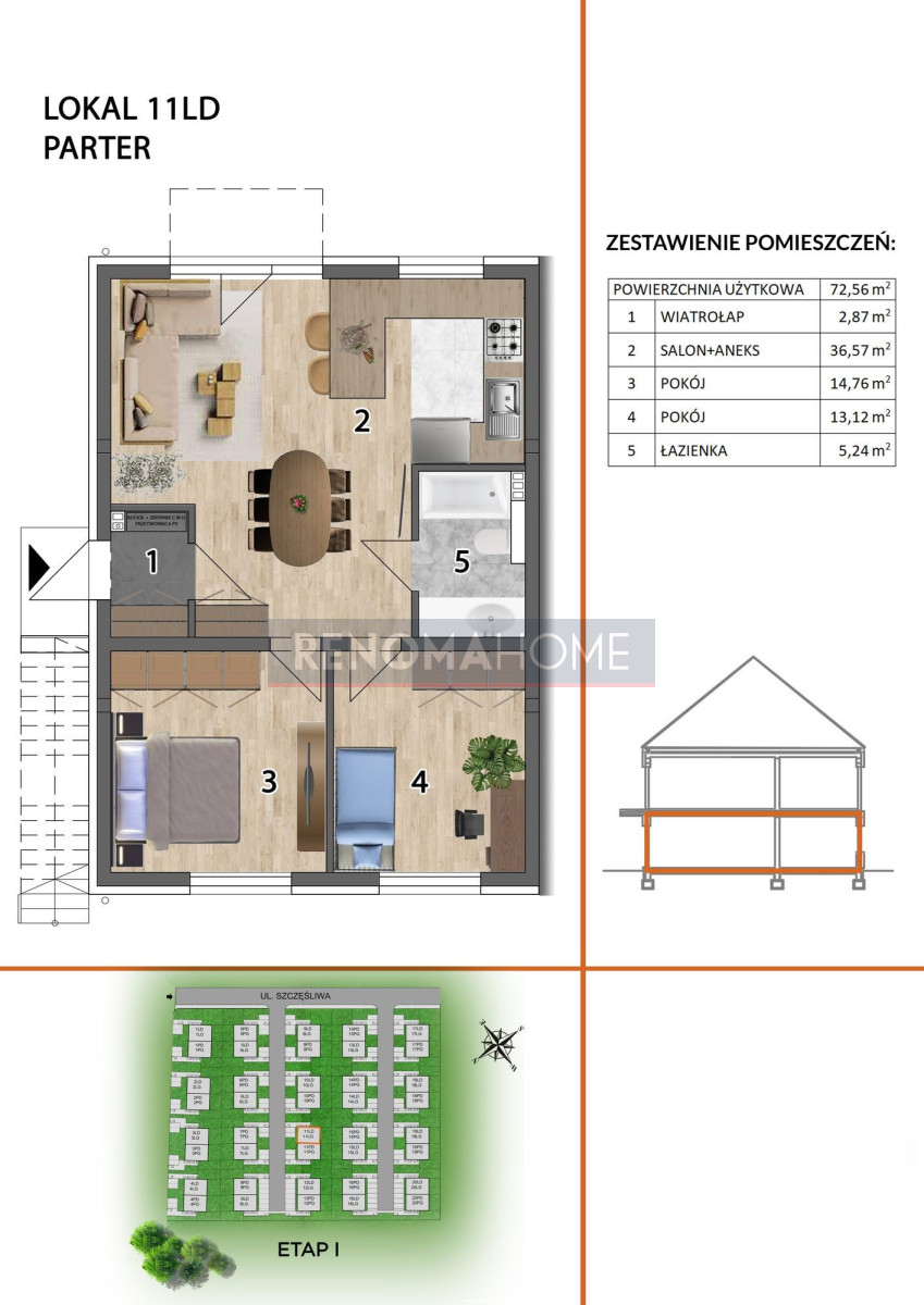 - 72 m² z ogrodami