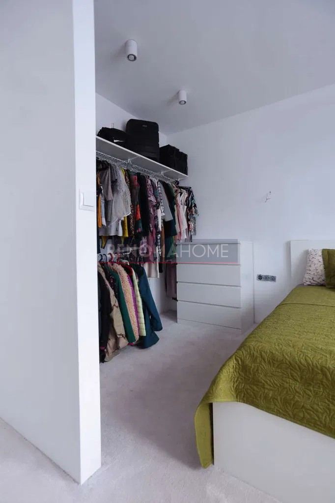 W salonie drewniany parkiet, w sypialni garderoba.