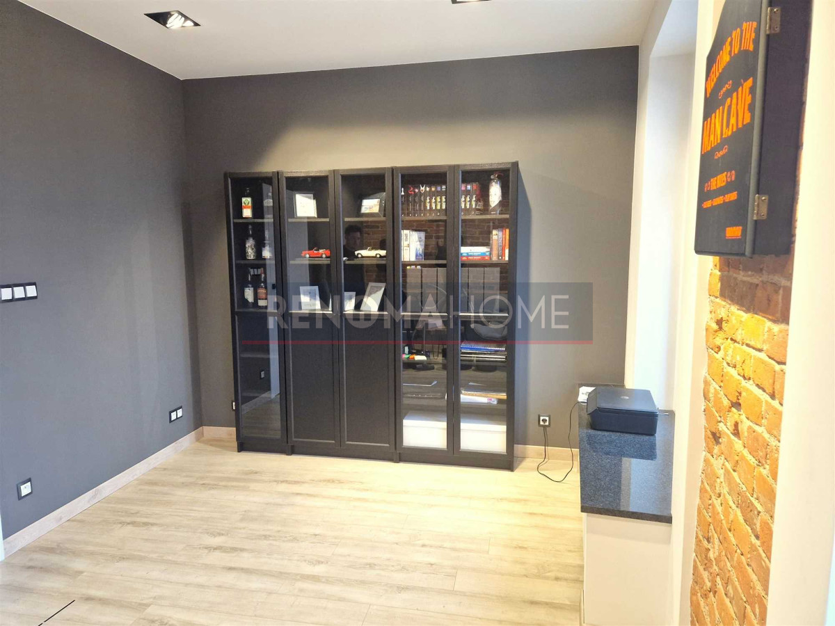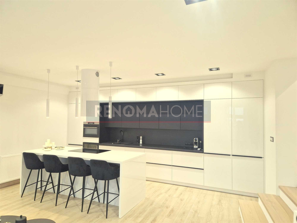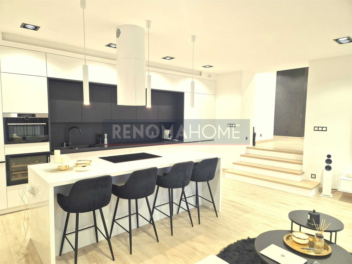 - Meble kuchenne wraz ze sprzętem AGD (lodówka, piekarnik z funkcją mikrofali, chłodziarka na wina, płyta indukcyjna, zmywarka)