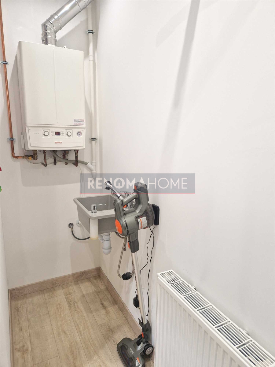 - Pomieszczenie gospodarcze: dwufunkcyjny piec gazowy, pralka, suszarka oraz dodatkowy zlew roboczy