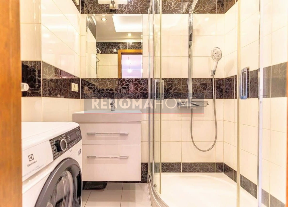 - Łazienka z kabiną prysznicową i umywalką