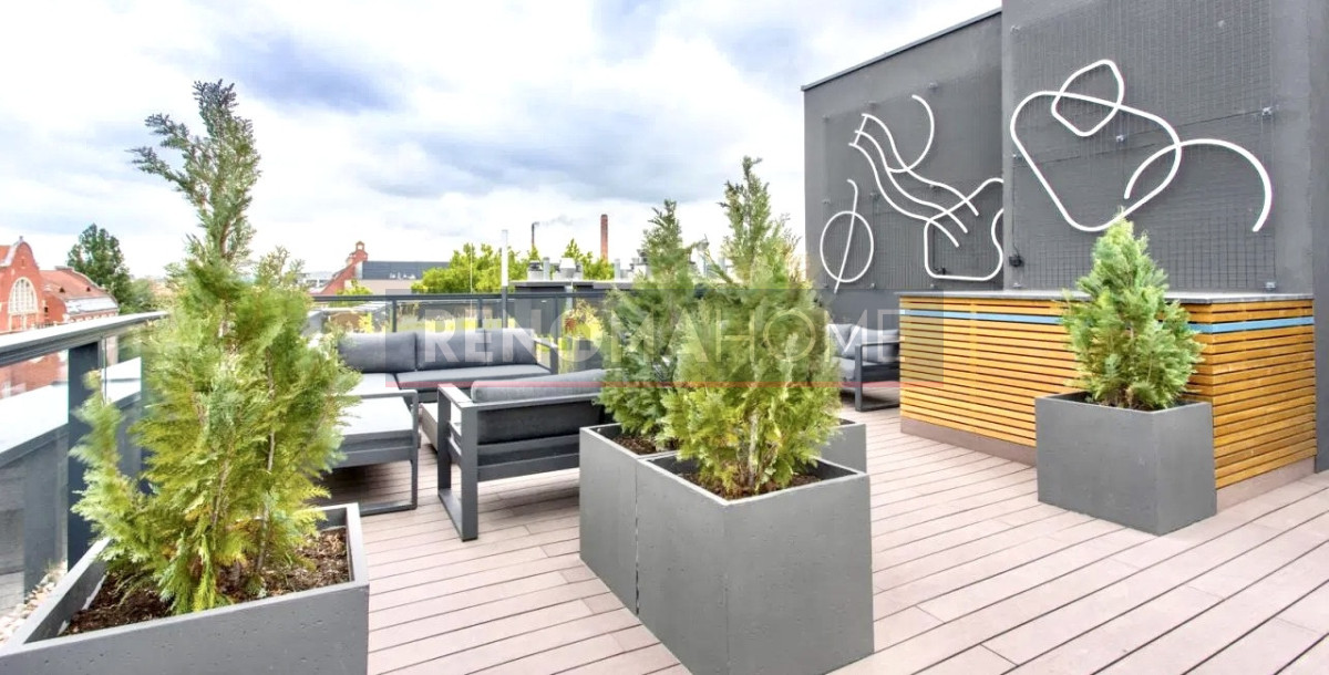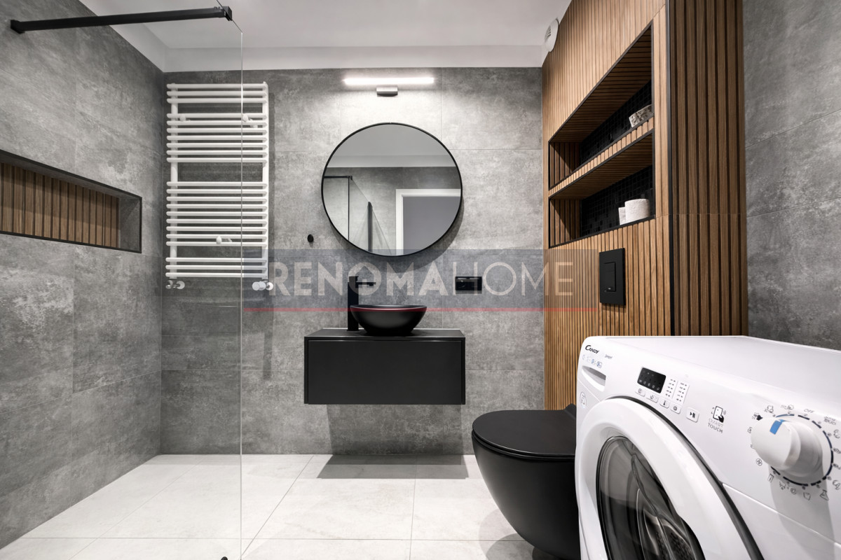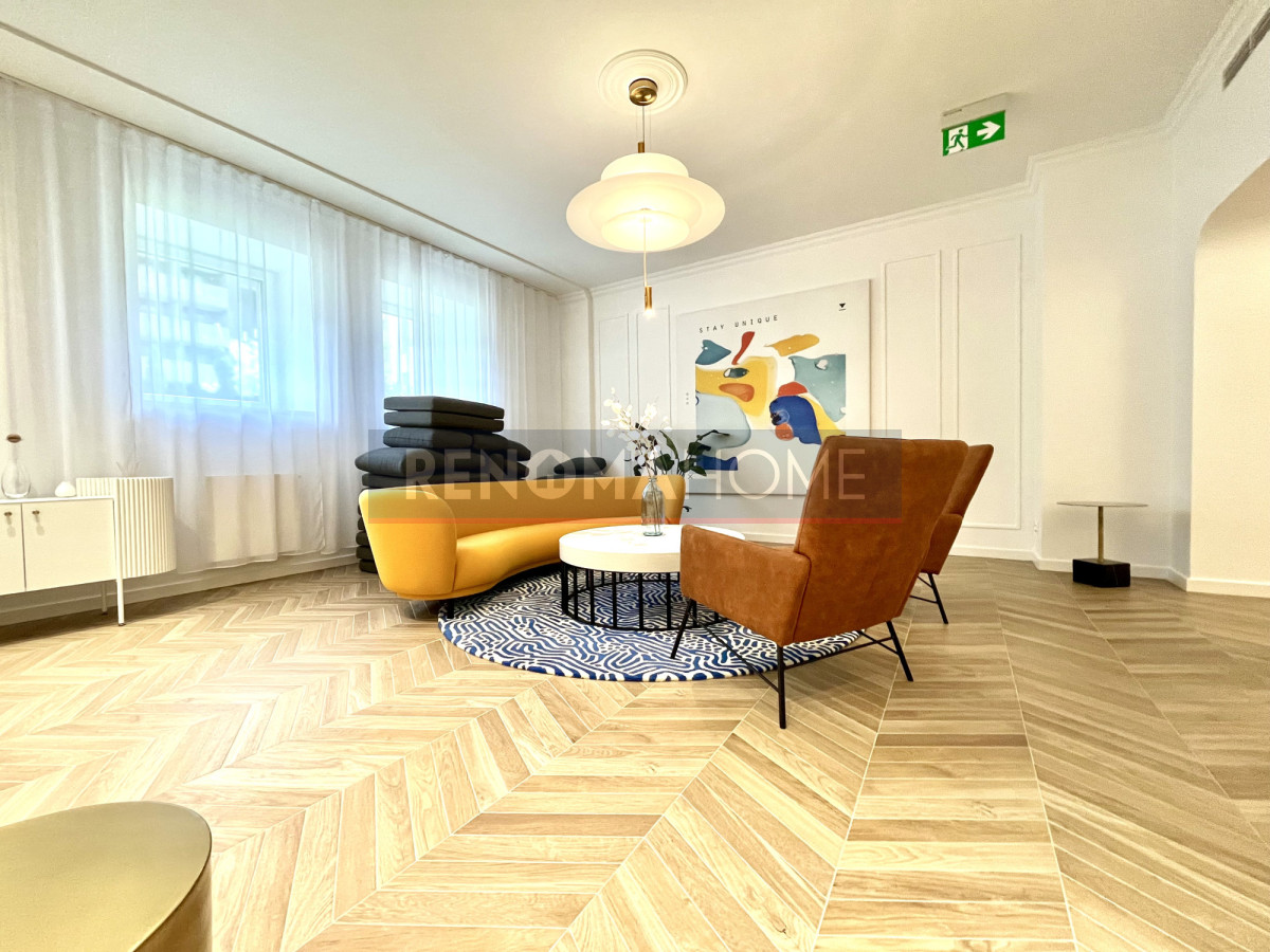 Dogodne położenie w sąsiedztwie sklepów, kawiarni, restauracji oraz siłowni.